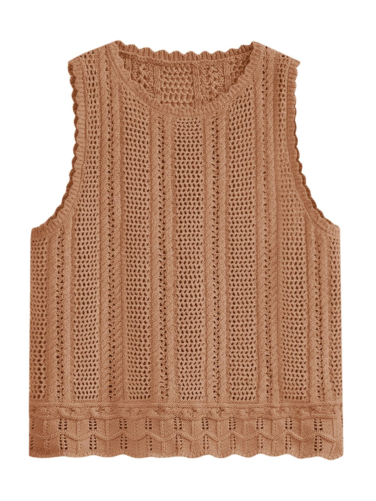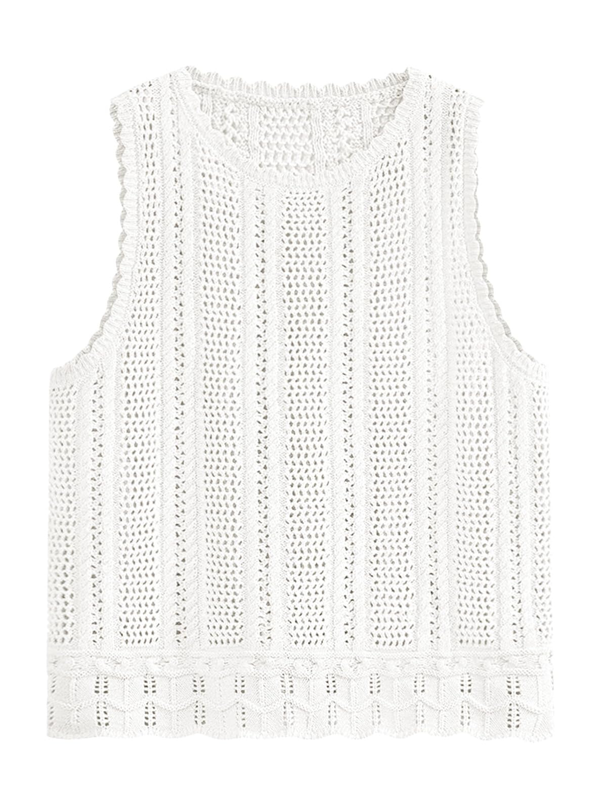 Fisoew Crochet Tops For Women 2026 Spring Summer Sleeveless Sweater Tank Fashion Beach Resort Wear Vacation Cover Ups Clothes