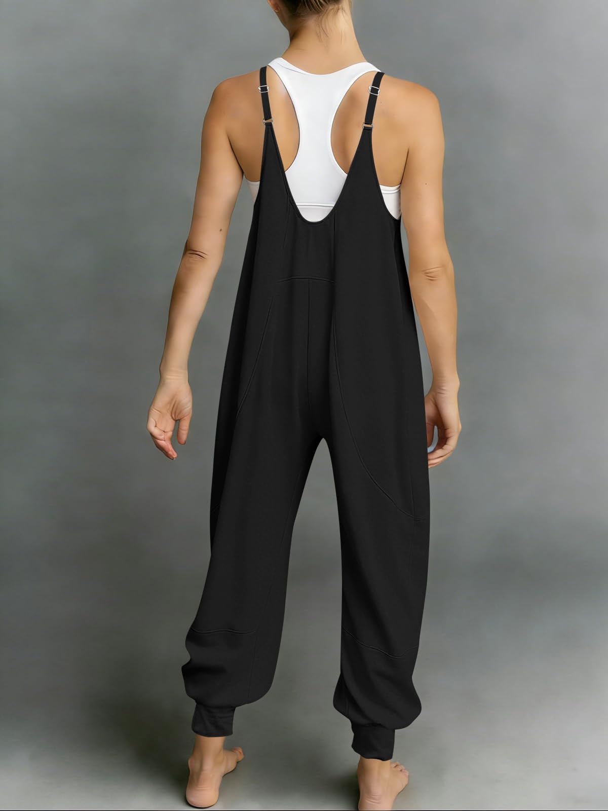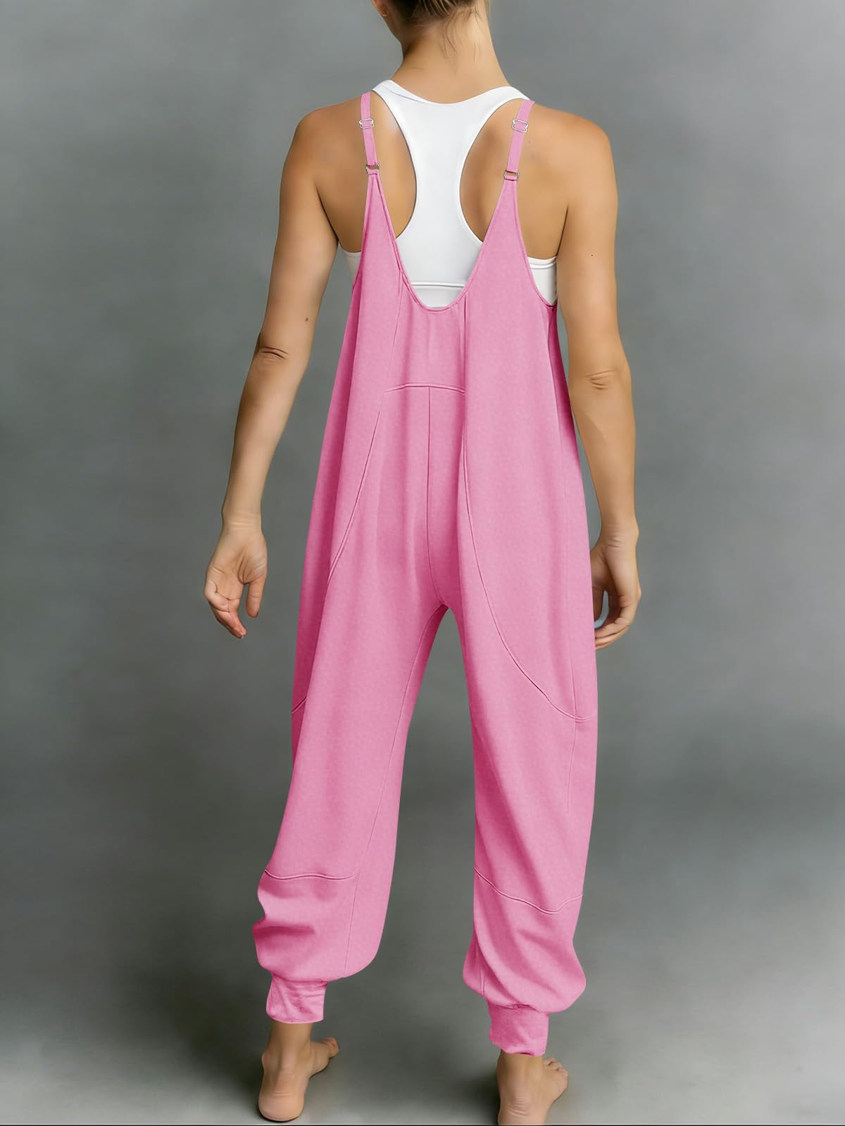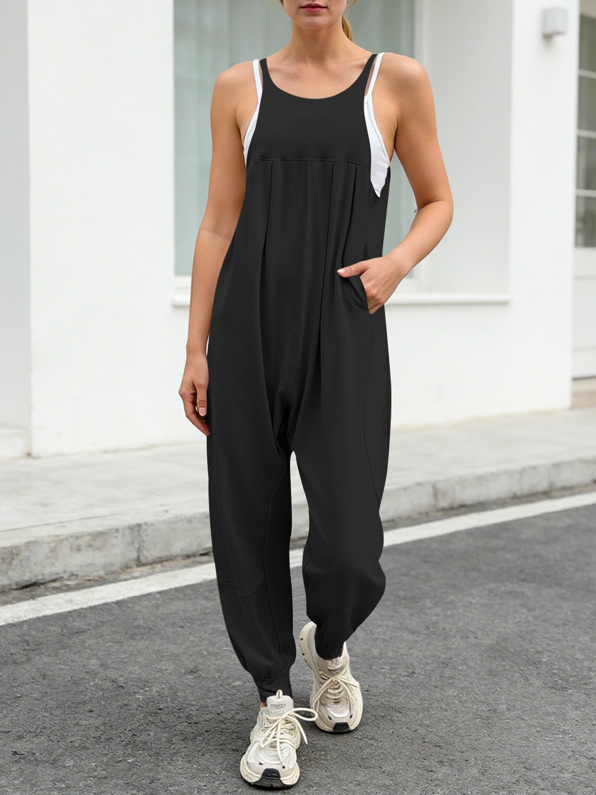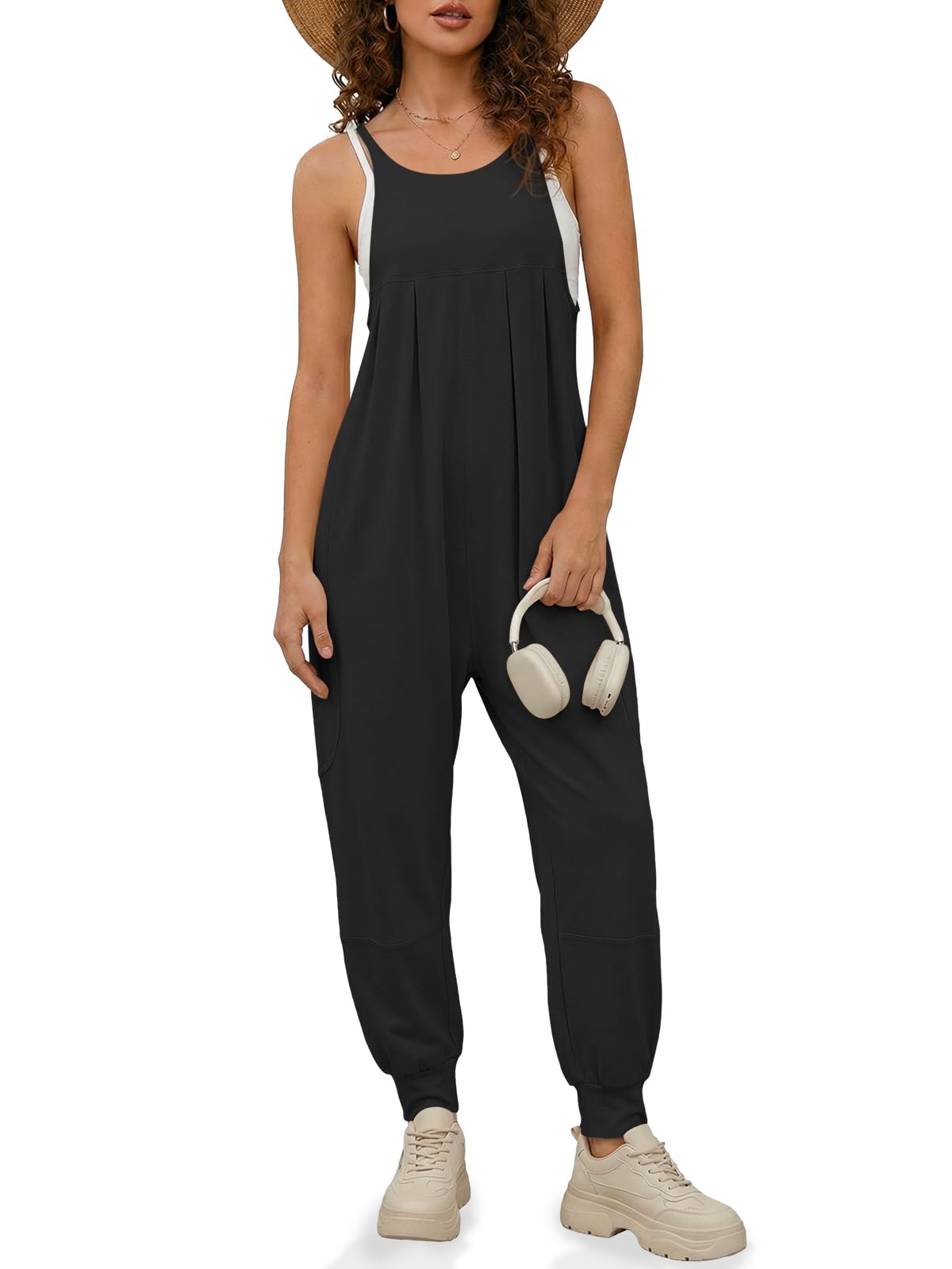 Fisoew Jumpsuits For Women Summer Casual Overalls Spaghetti Strap Sleeveless Pleated Rompers Jumpers With Pockets
