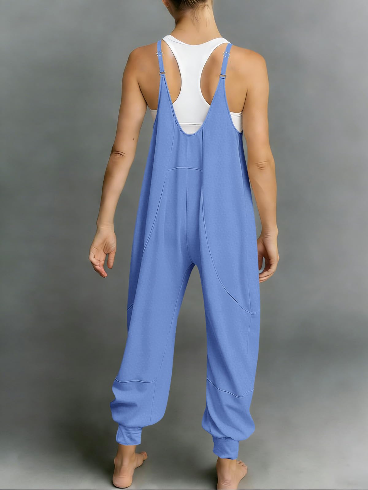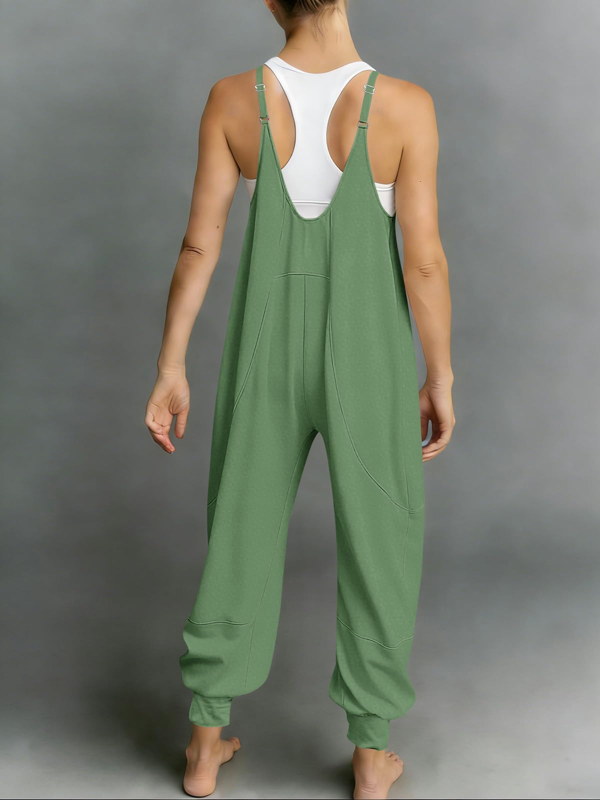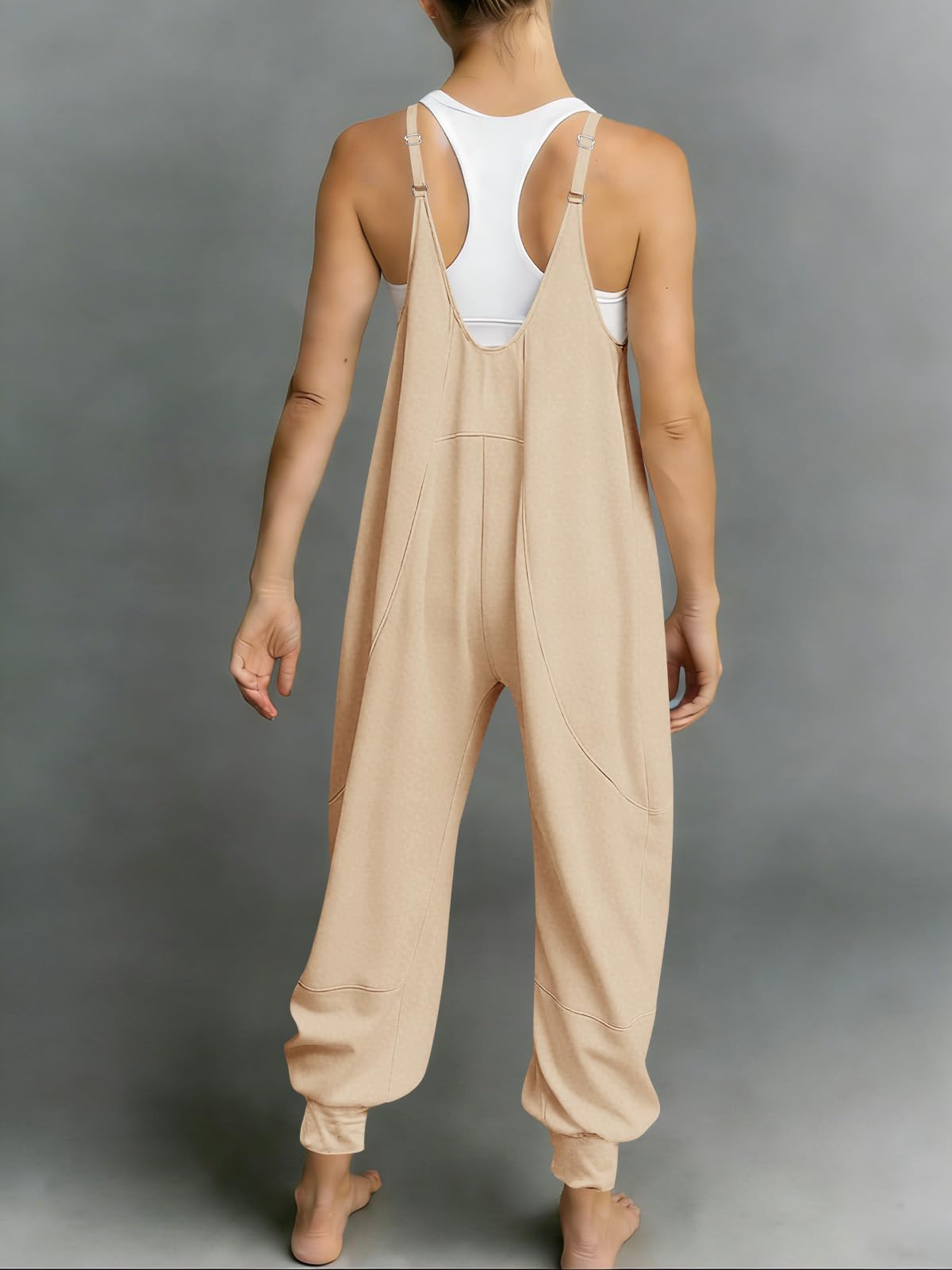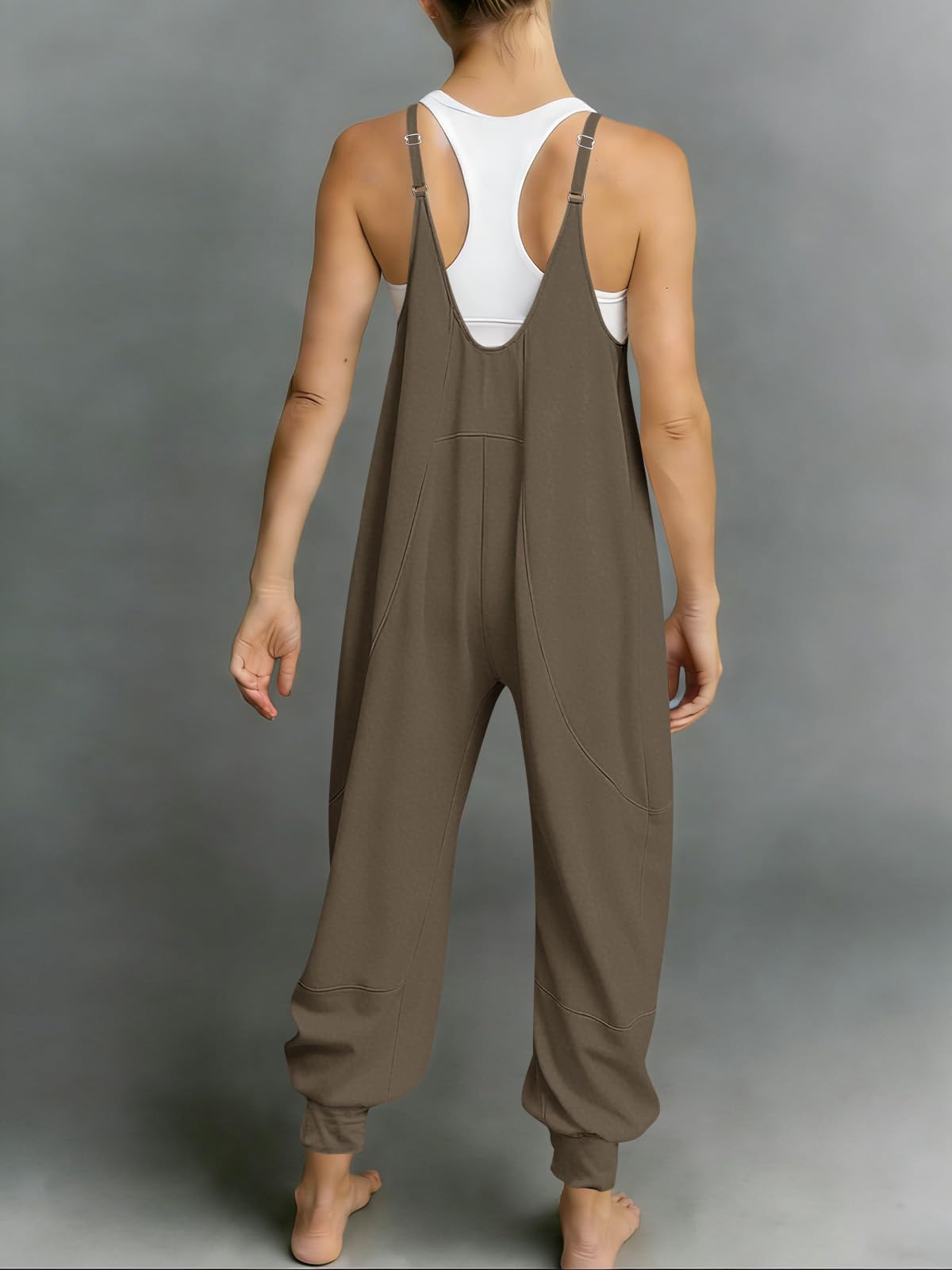 Fisoew Jumpsuits For Women Summer Casual Overalls Spaghetti Strap Sleeveless Pleated Rompers Jumpers With Pockets