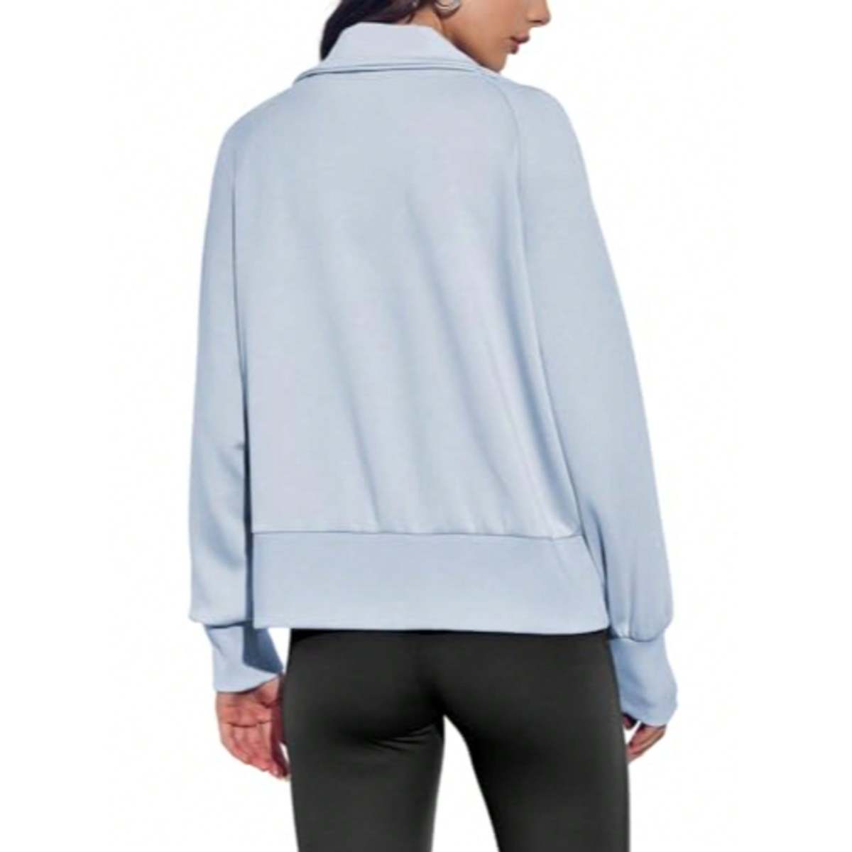 Fisoew Women's Zip Up Sweatshirt Collared Neck Long Sleeve Loose Casual Lightweight Jacket With Pockets