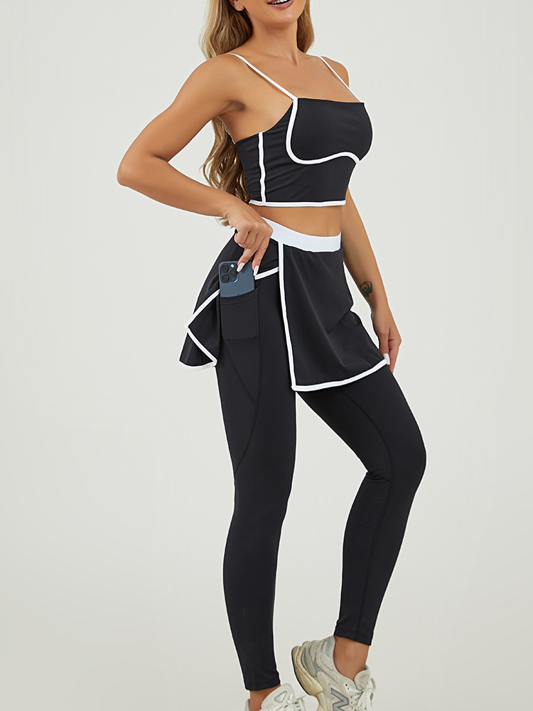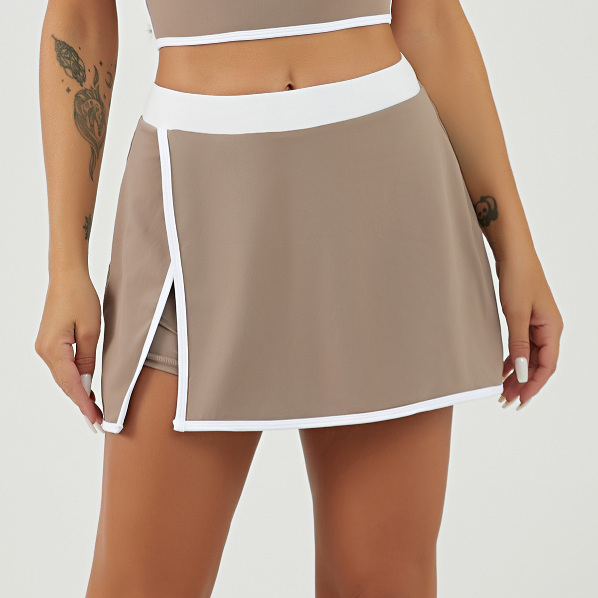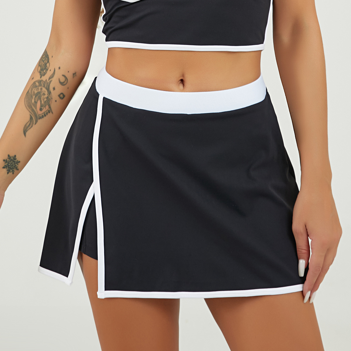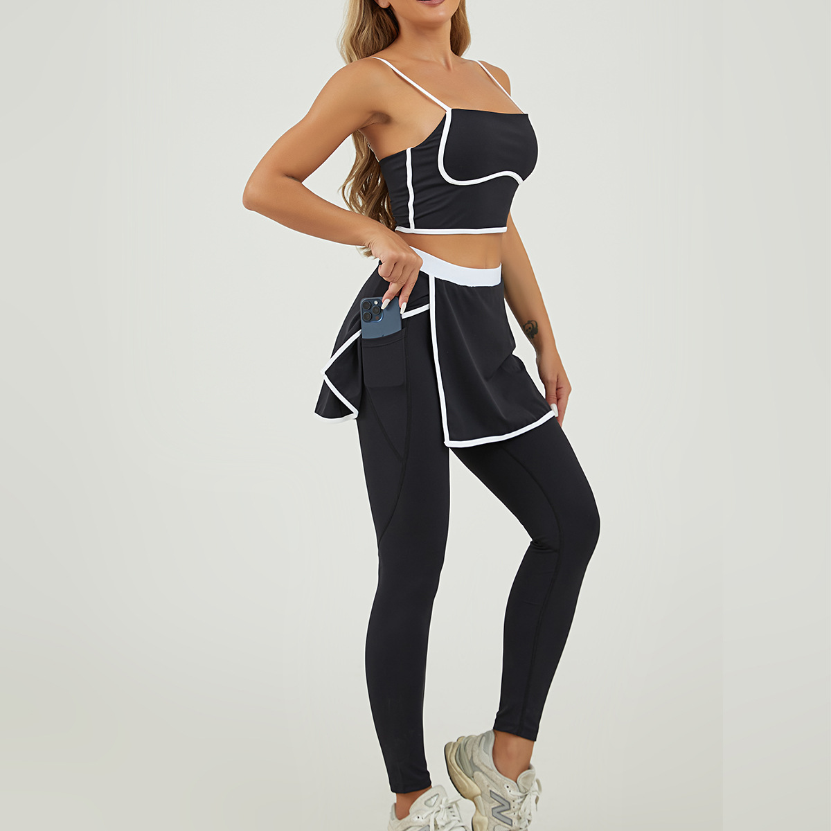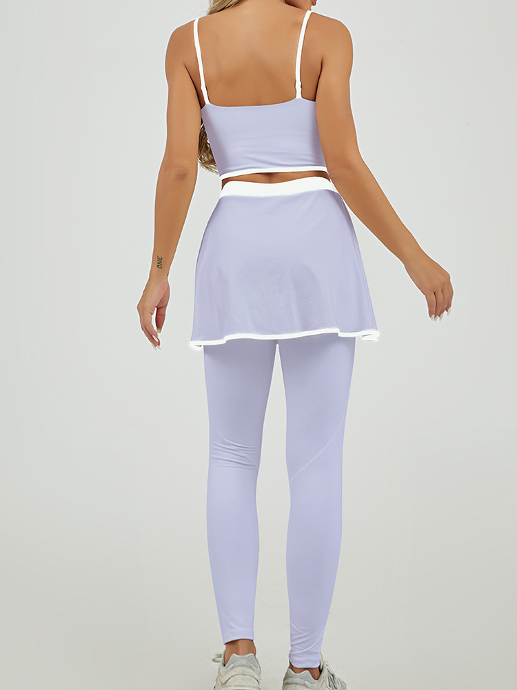 Colors: Black camisole (with chest pads), white camisole (with chest pads), blue camisole (with chest pads), khaki camisole (with chest pads), black skort, white skort, blue skort, khaki skort, black long skort, white long skort, blue long skort, khaki long skort, black camisole + skort set, white camisole + skort set, blue camisole + skort set, khaki camisole + skort set, black camisole + long skort set, white camisole + long skort set, blue camisole + long skort set, khaki camisole + long skort set