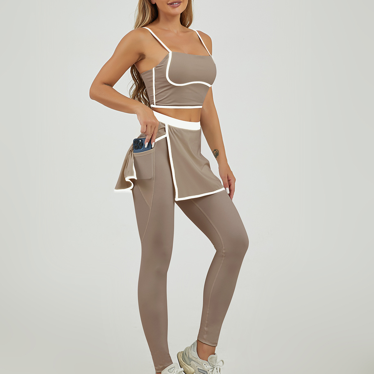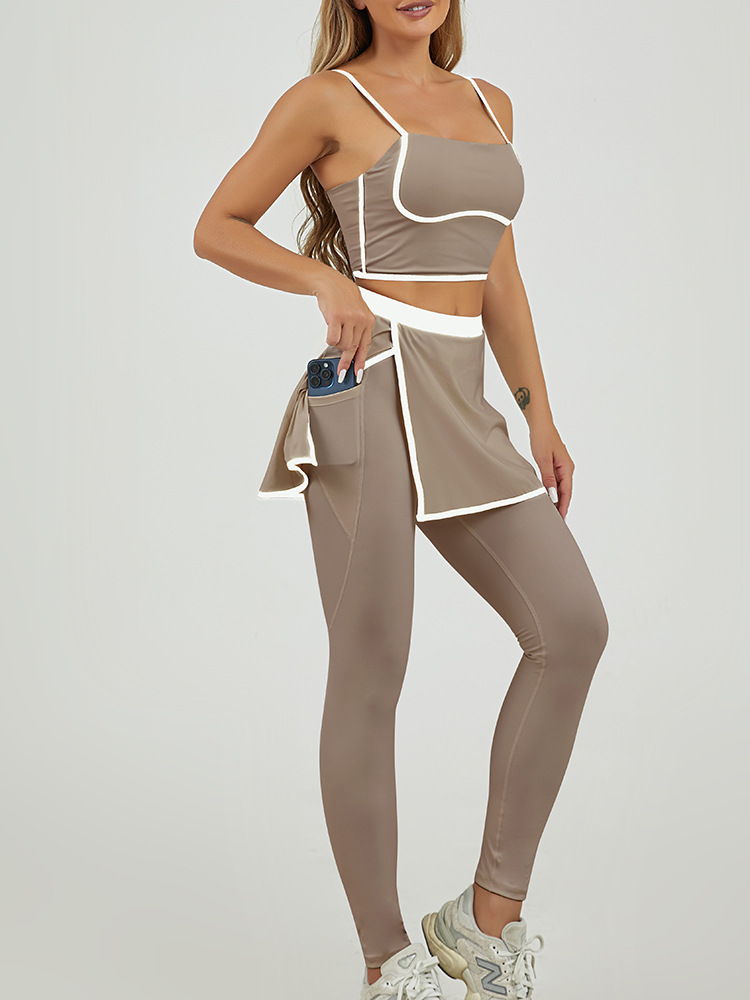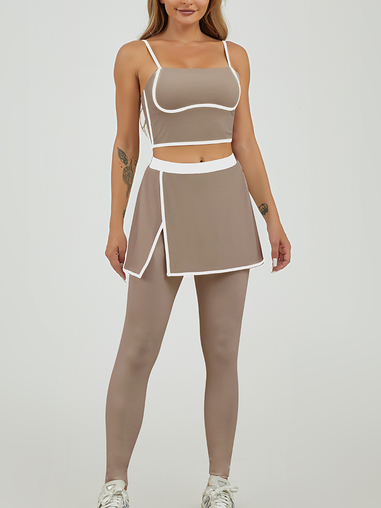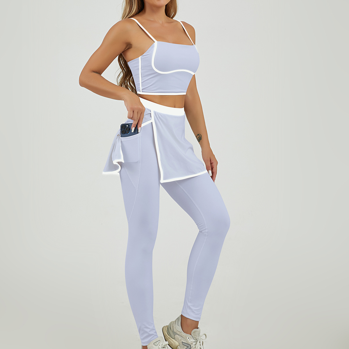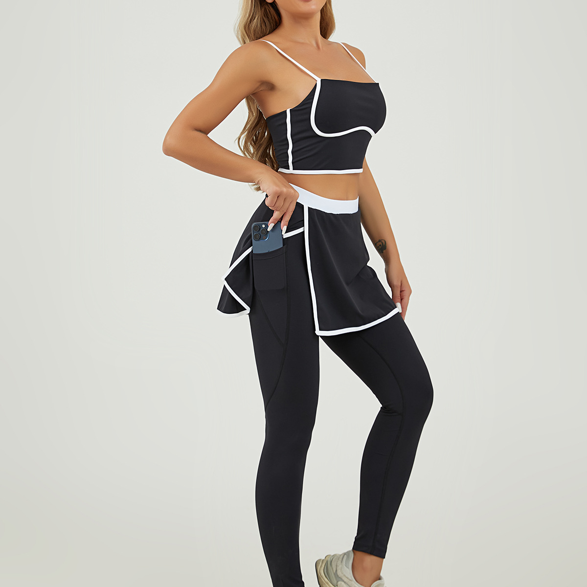 Colors: Black camisole (with chest pads), white camisole (with chest pads), blue camisole (with chest pads), khaki camisole (with chest pads), black skort, white skort, blue skort, khaki skort, black long skort, white long skort, blue long skort, khaki long skort, black camisole + skort set, white camisole + skort set, blue camisole + skort set, khaki camisole + skort set, black camisole + long skort set, white camisole + long skort set, blue camisole + long skort set, khaki camisole + long skort set