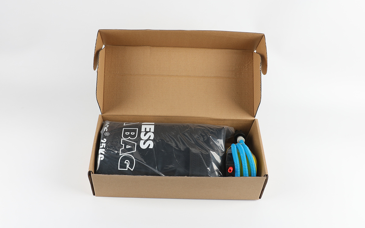 Accessories: A single water bag is equipped with a push-type air pump, and a single PE bag is packed and then put into the carton.