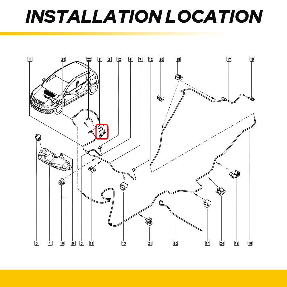 Adopts double water outlet design, which can provide more uniform and sufficient water mist for the front windshield.