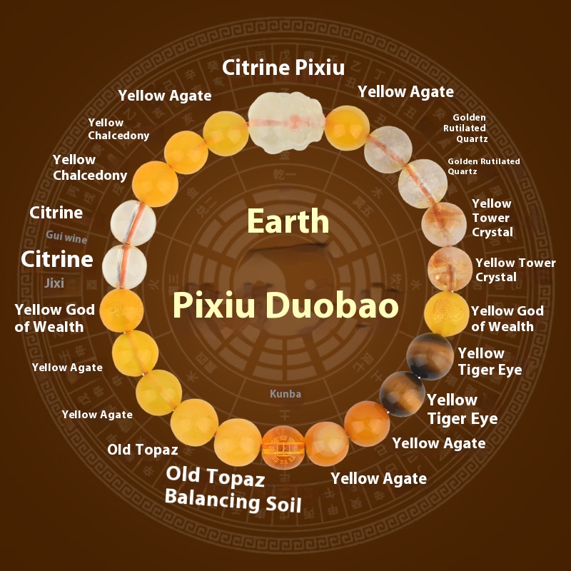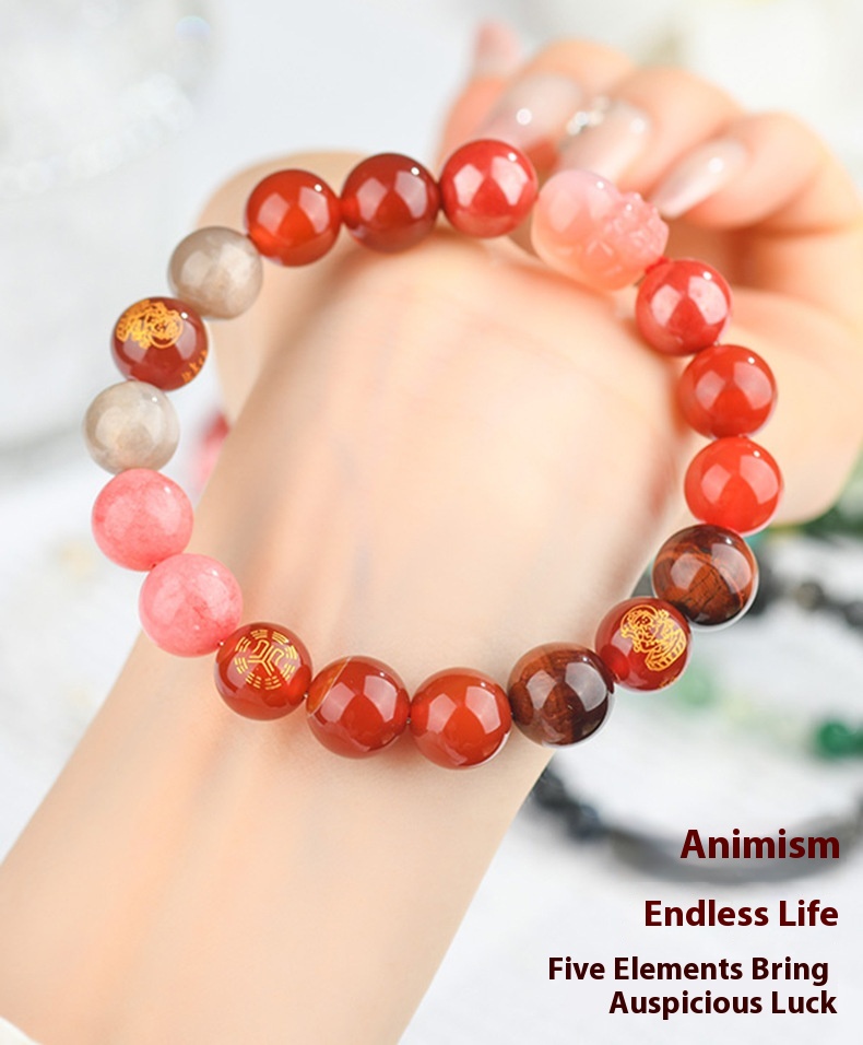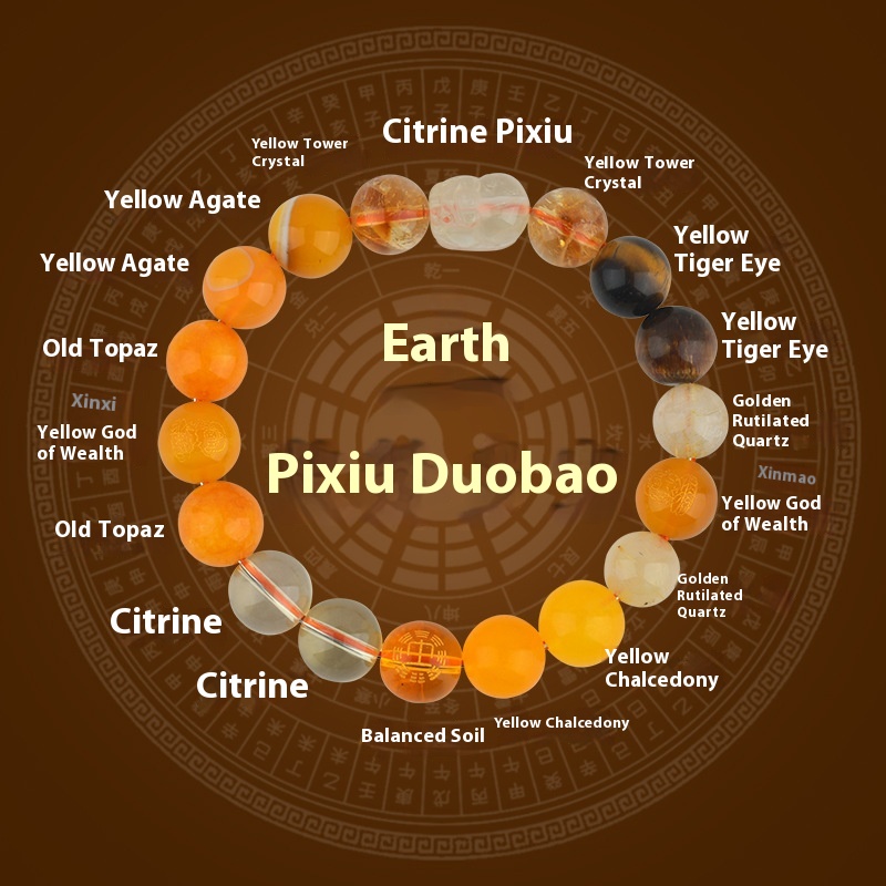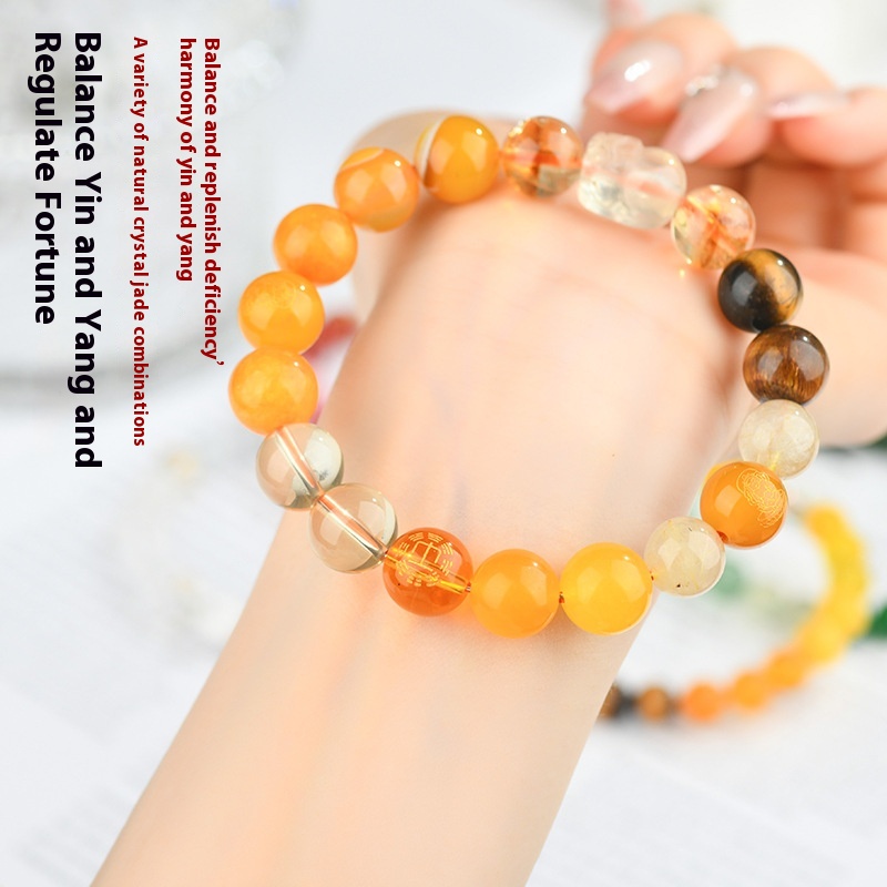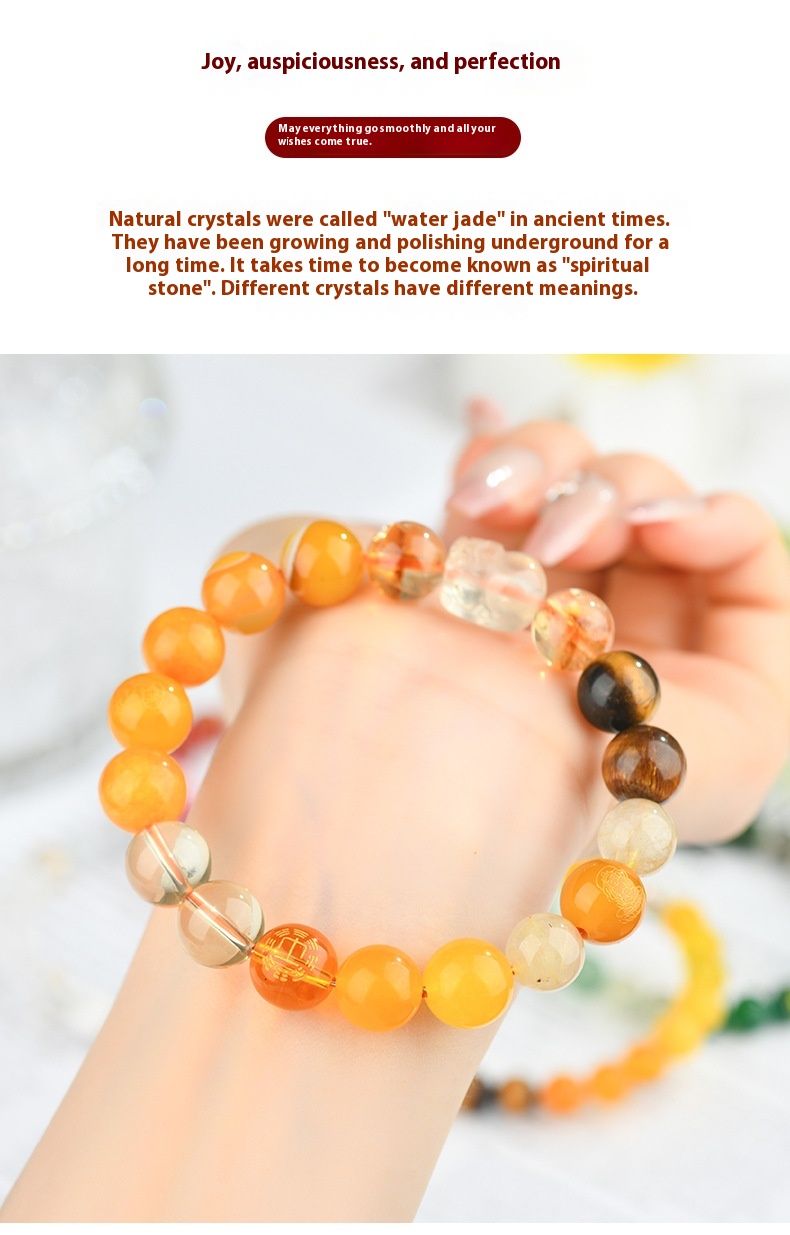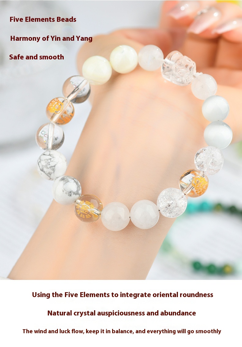 Five Elements Golden Wood Water Fire Soil Natural Crystal Bracelet