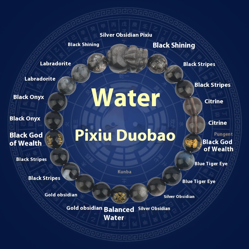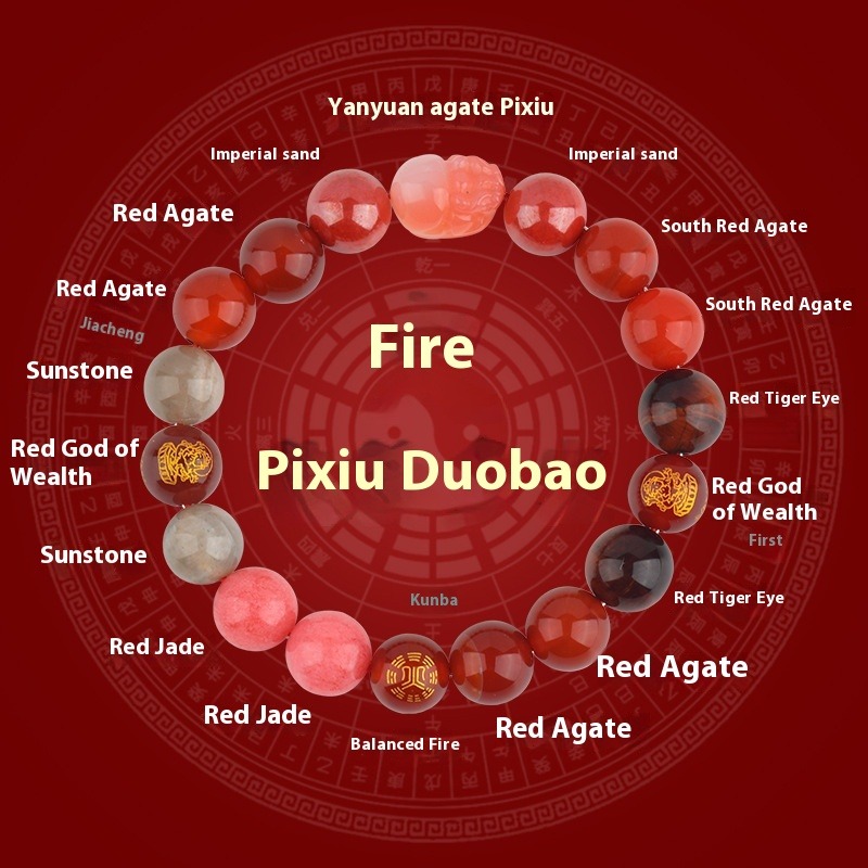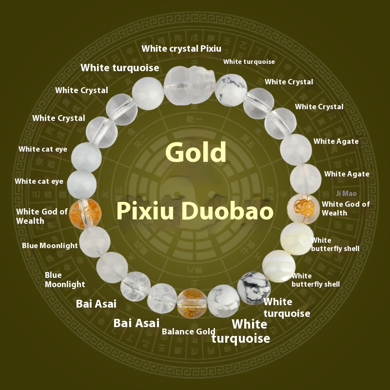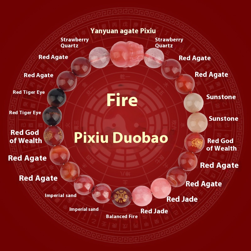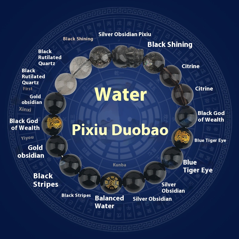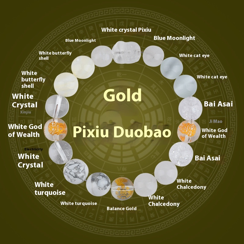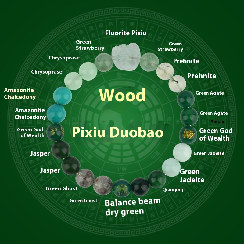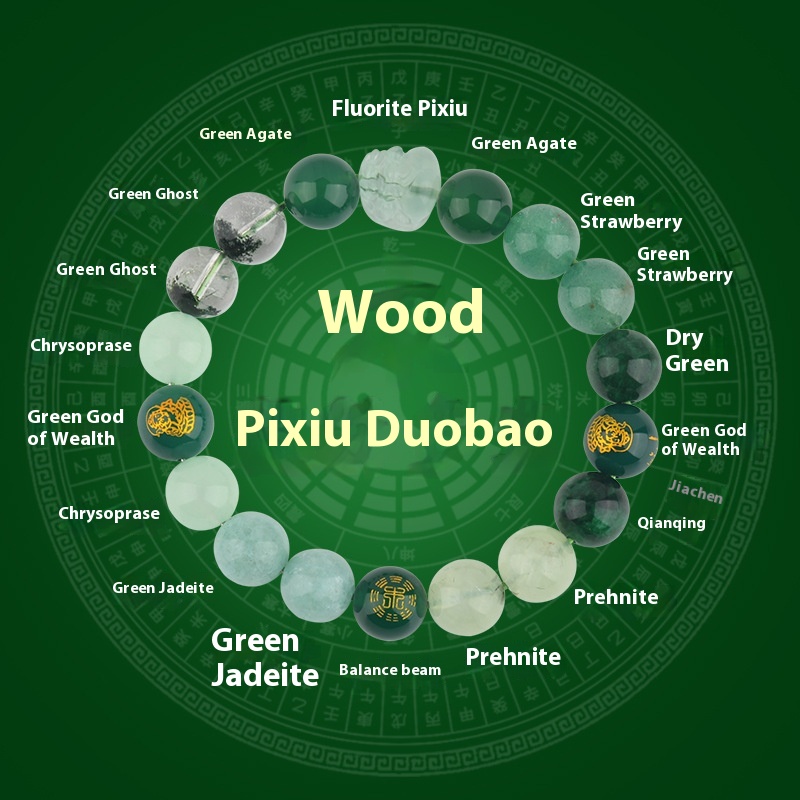 Five Elements Golden Wood Water Fire Soil Natural Crystal Bracelet