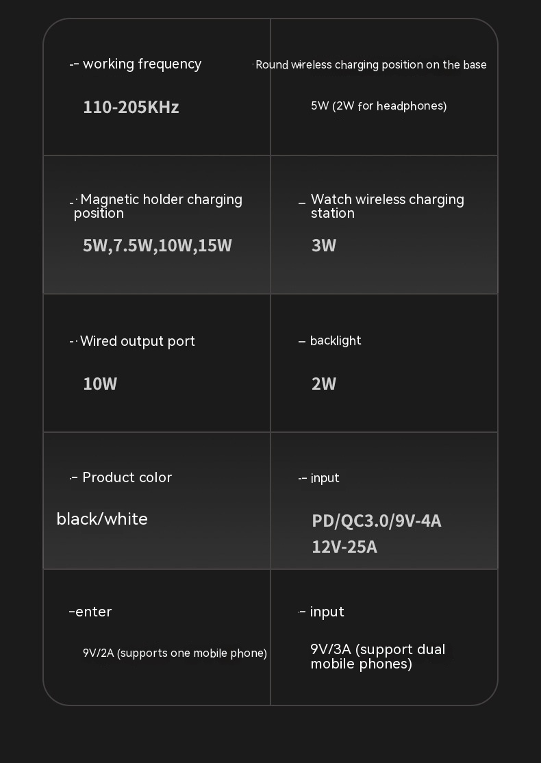 Magnetic suction bracket charging position: 5W, 7.5W, 10W, 15W