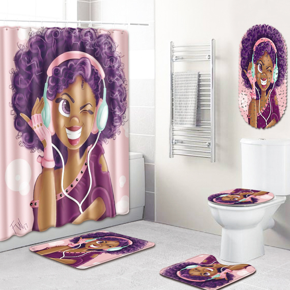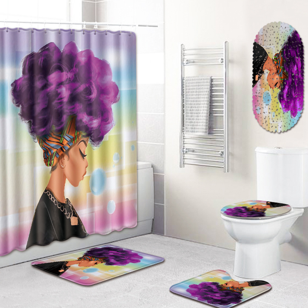 180 * 180 shower curtain + 45 * 75 three-piece floor mat set + bathroom mat