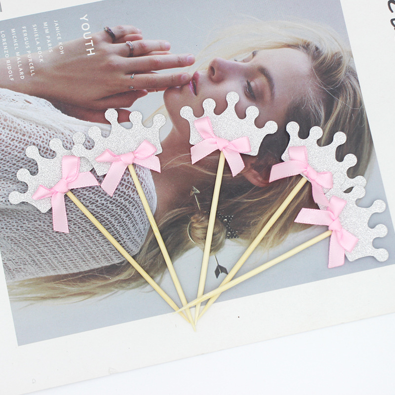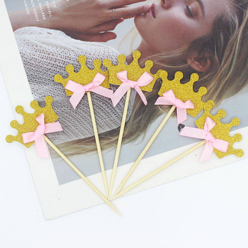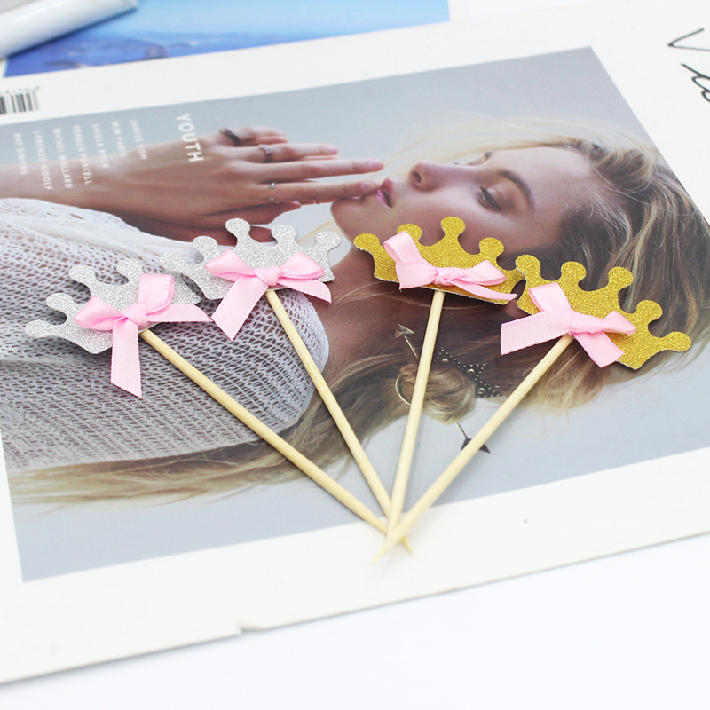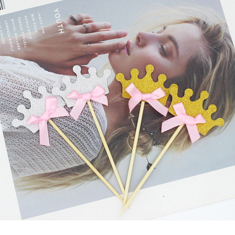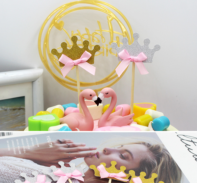 Five-Piece Birthday Cake With Gold And Silver Small Crown Card Insert Party Decoration Insert