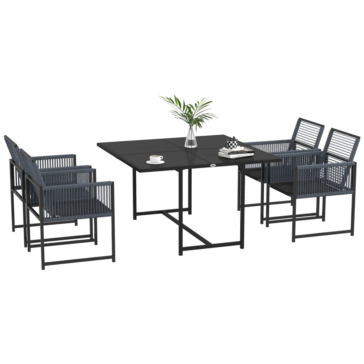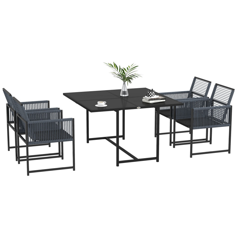 The steel chairs and matching table of this outdoor dining table and chairs are built to last. This metal garden furniture set is suitable for relaxing with company outdoors, this season and beyond. When not in use, you can fold the backs of the chairs and tuck them under the table.