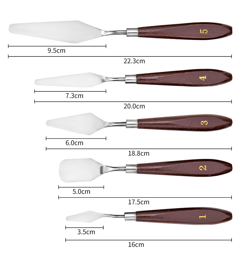 Features: wooden handle oil painting scraper, comfortable grip, high quality material stainless steel blade, good elasticity, suitable for painting lovers.