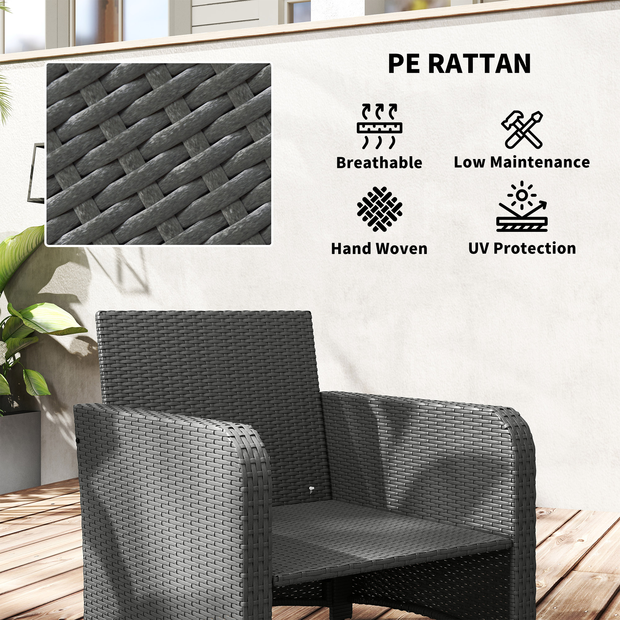 Transform your garden into a cosy retreat with the rattan furniture set from . This five-piece outdoor garden furniture ensemble, featuring two chairs, two versatile footstools and a chic two-tier coffee table, offers a great setting for leisurely afternoons. Enjoy wide seating with thick cushions for comfort. Easily slide ottomans under the chairs when not in use, saving space and keeping your outdoor area neat and organised. Great for any garden, conservatory, or balcony setup.