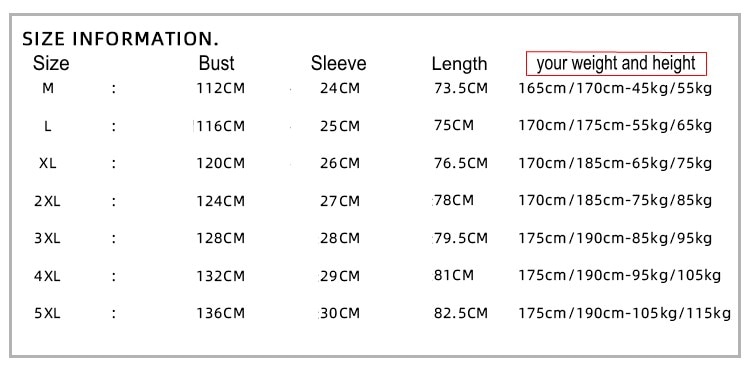 Size: M/L/XL/XXL/3XL/4XL/5XL