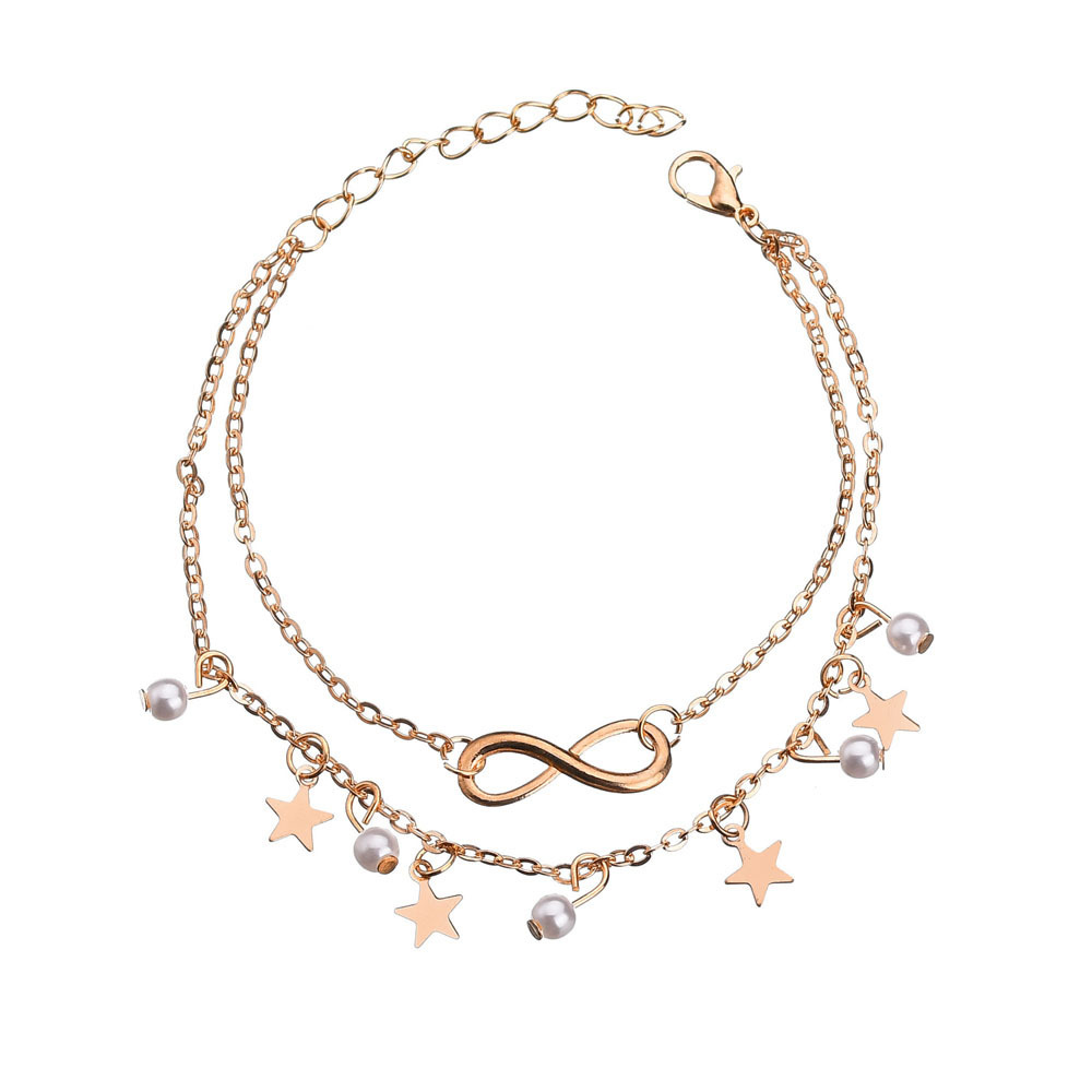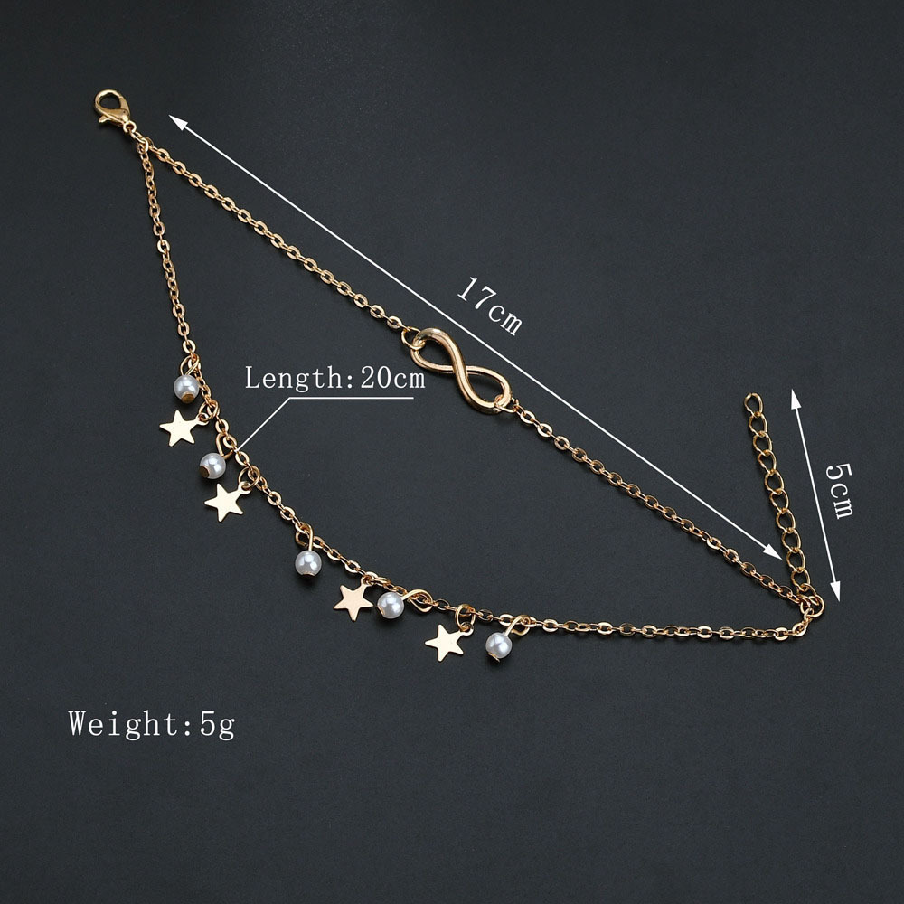 Five-pointed star pearl 8 word anklet