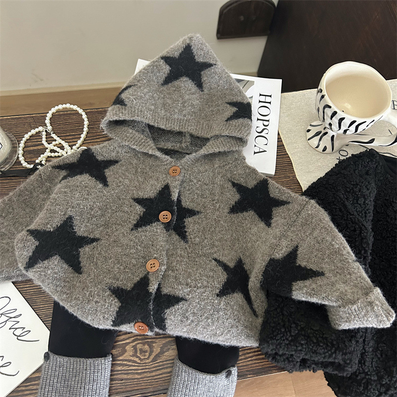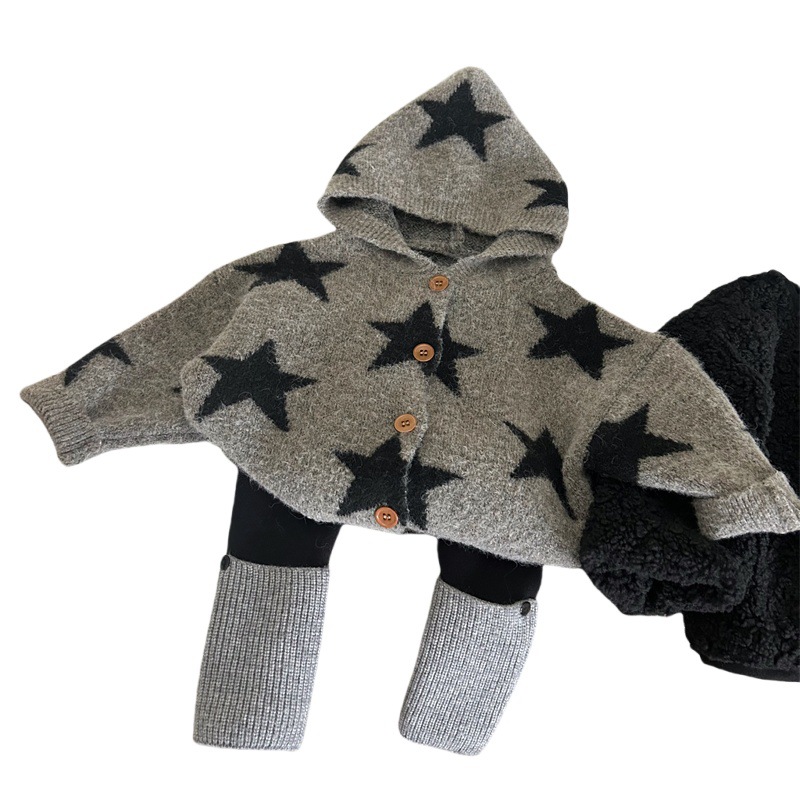 Color: five-pointed star sweater cardigan, velvet thickened leggings