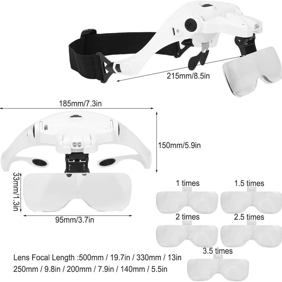 - Equipped with 2 adjustable LED lights in the center, the headband is also adjustable, and the 5 different magnifications can be easily switched.