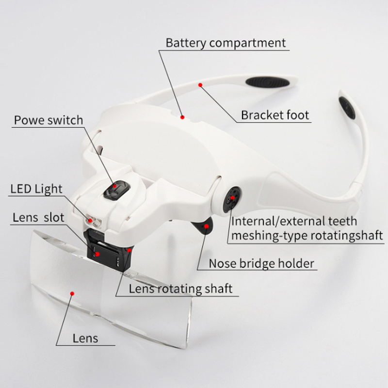 Five Sets Of Optical Lenses In The Dual-LED Headwear Magnifying Glass Style