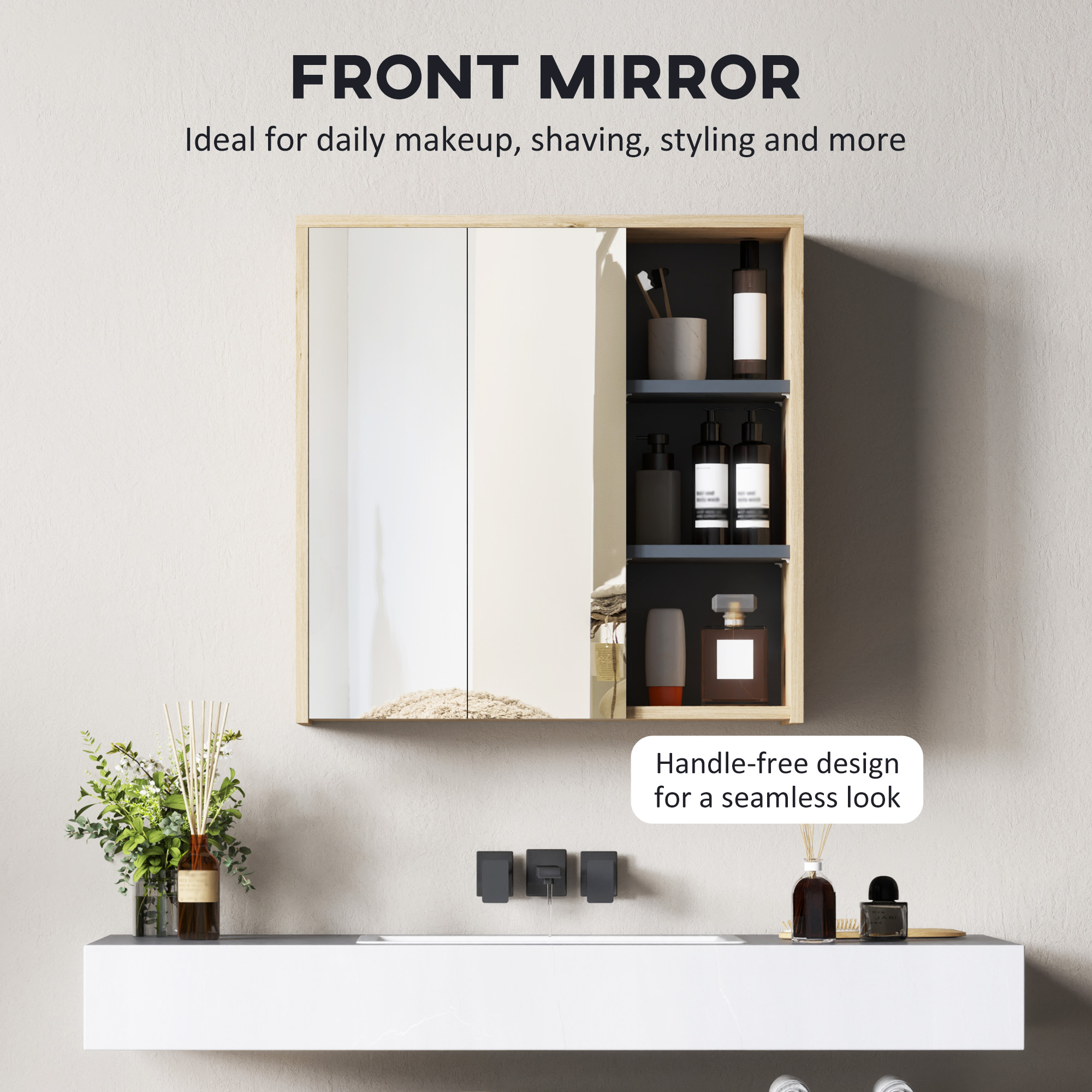 An everyday essential, this bathroom mirror cabinet. It comes in two parts: a mirrored door with two shelves and three outer shelves - plenty of room to keep the essentials stored and organised for a tidy space. A wall-mounted design, so it doesn't take up space: see yourself to get ready day and night with the front mirror doors, complete with smooth-open hinges.