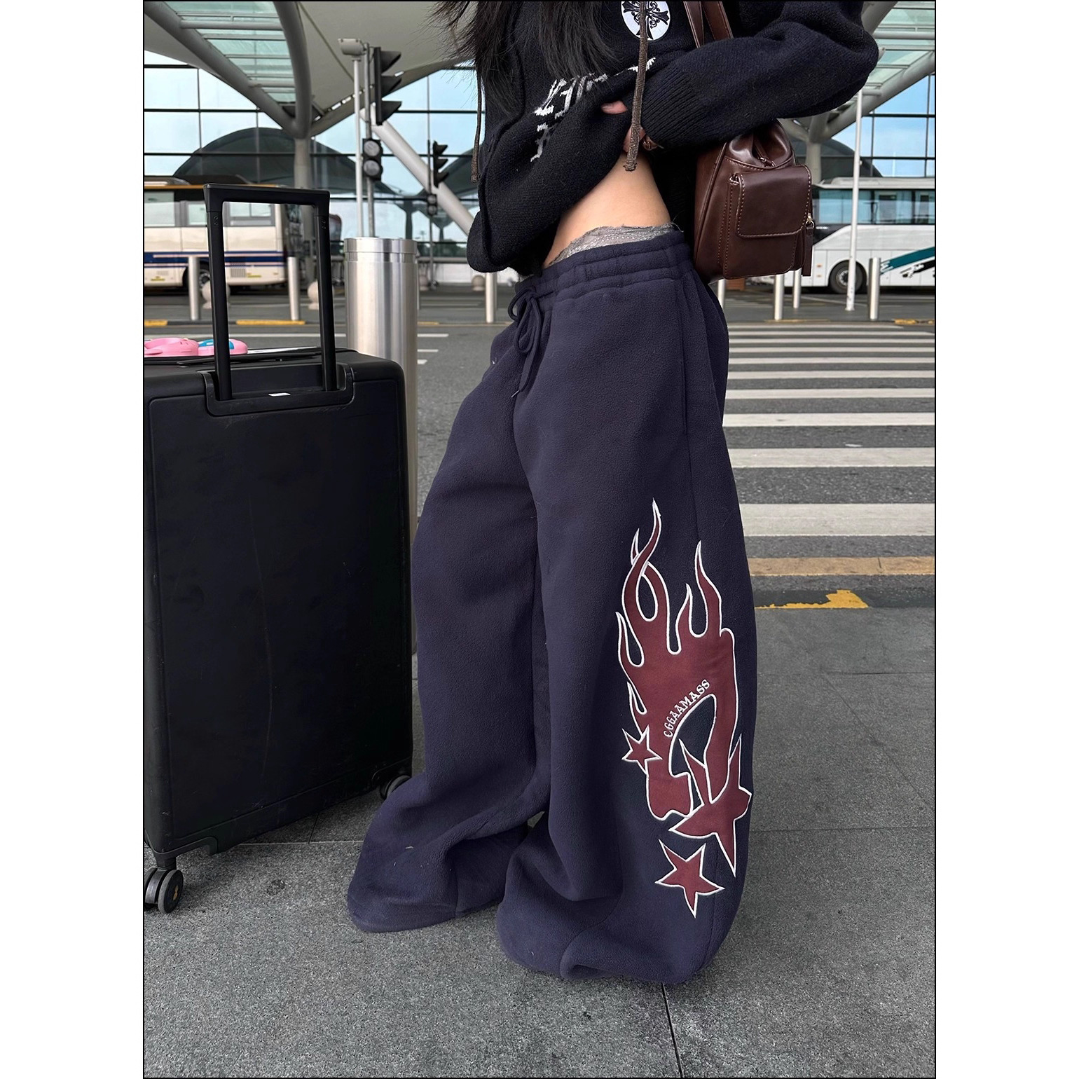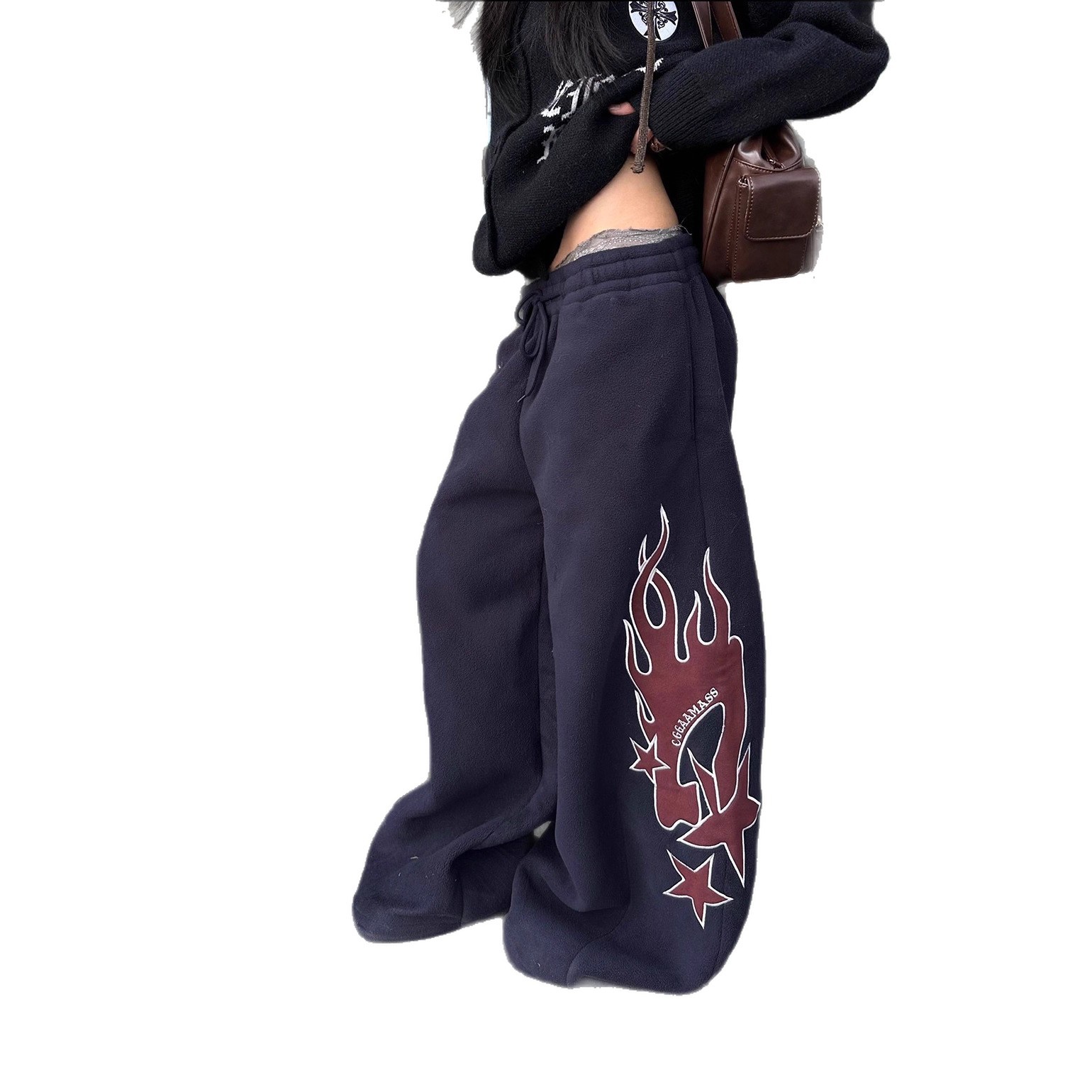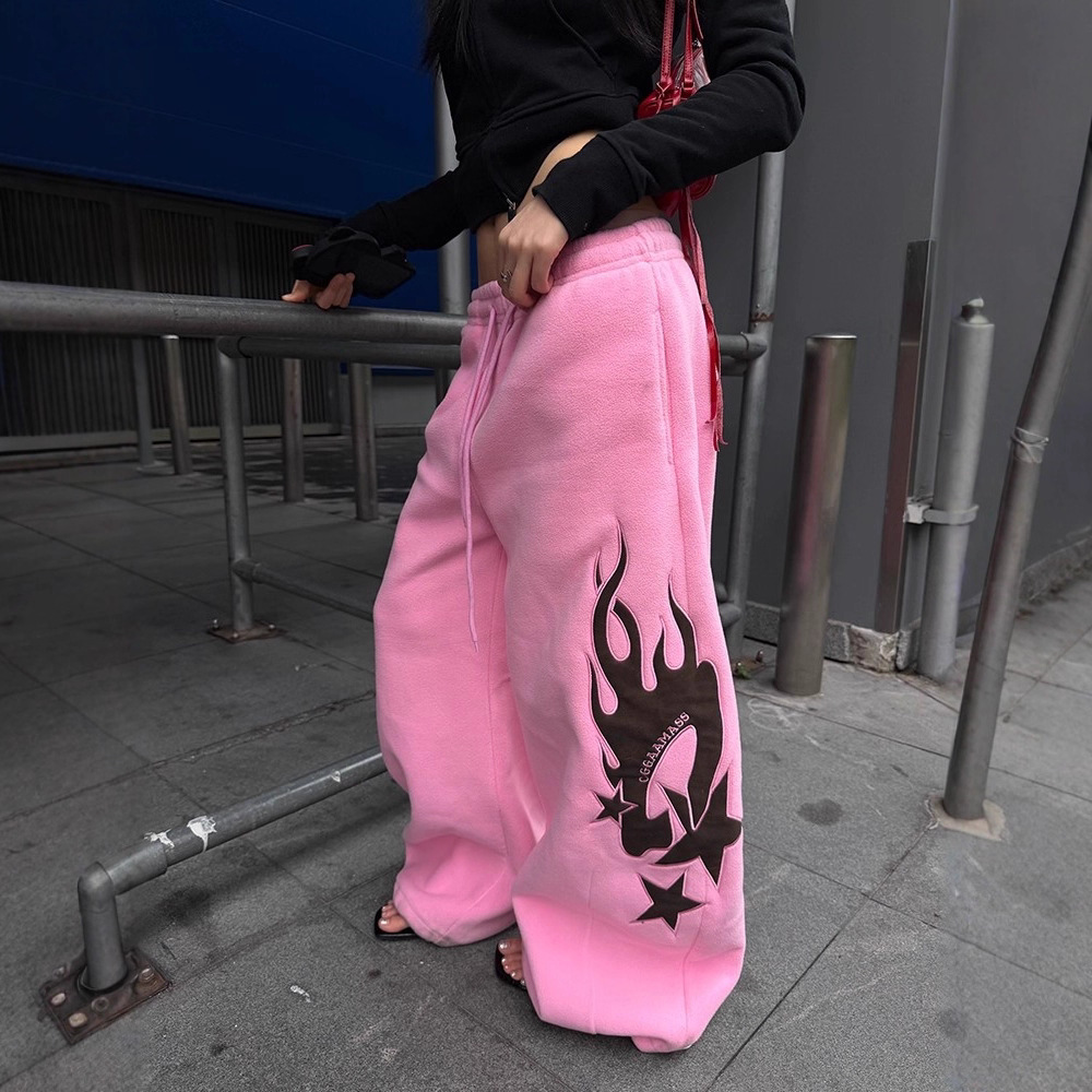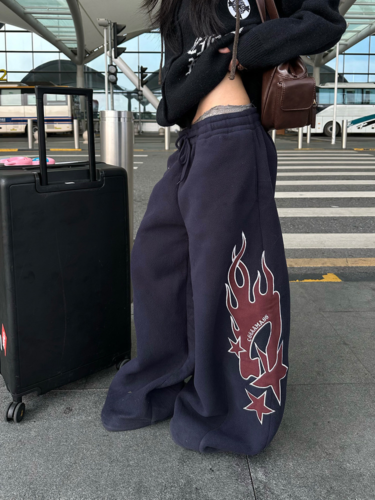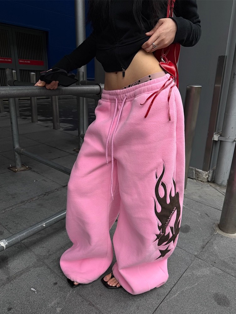Flame-patterned Casual Loose-fitting Pants