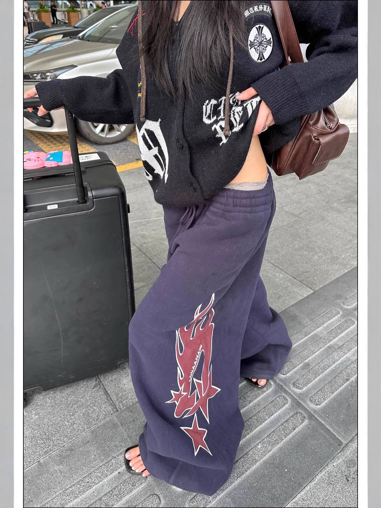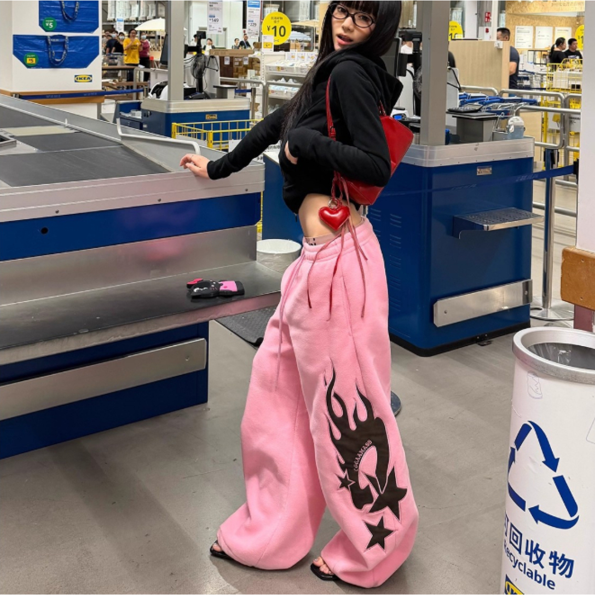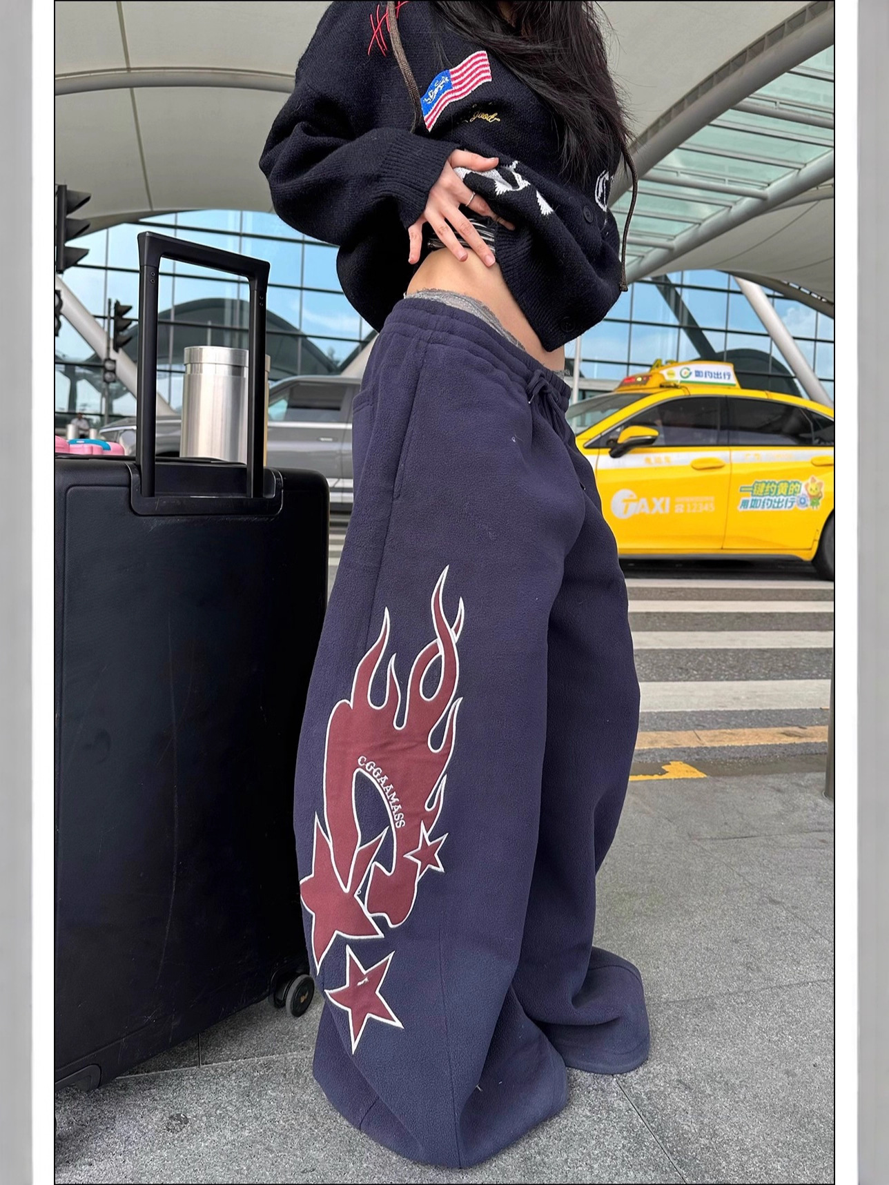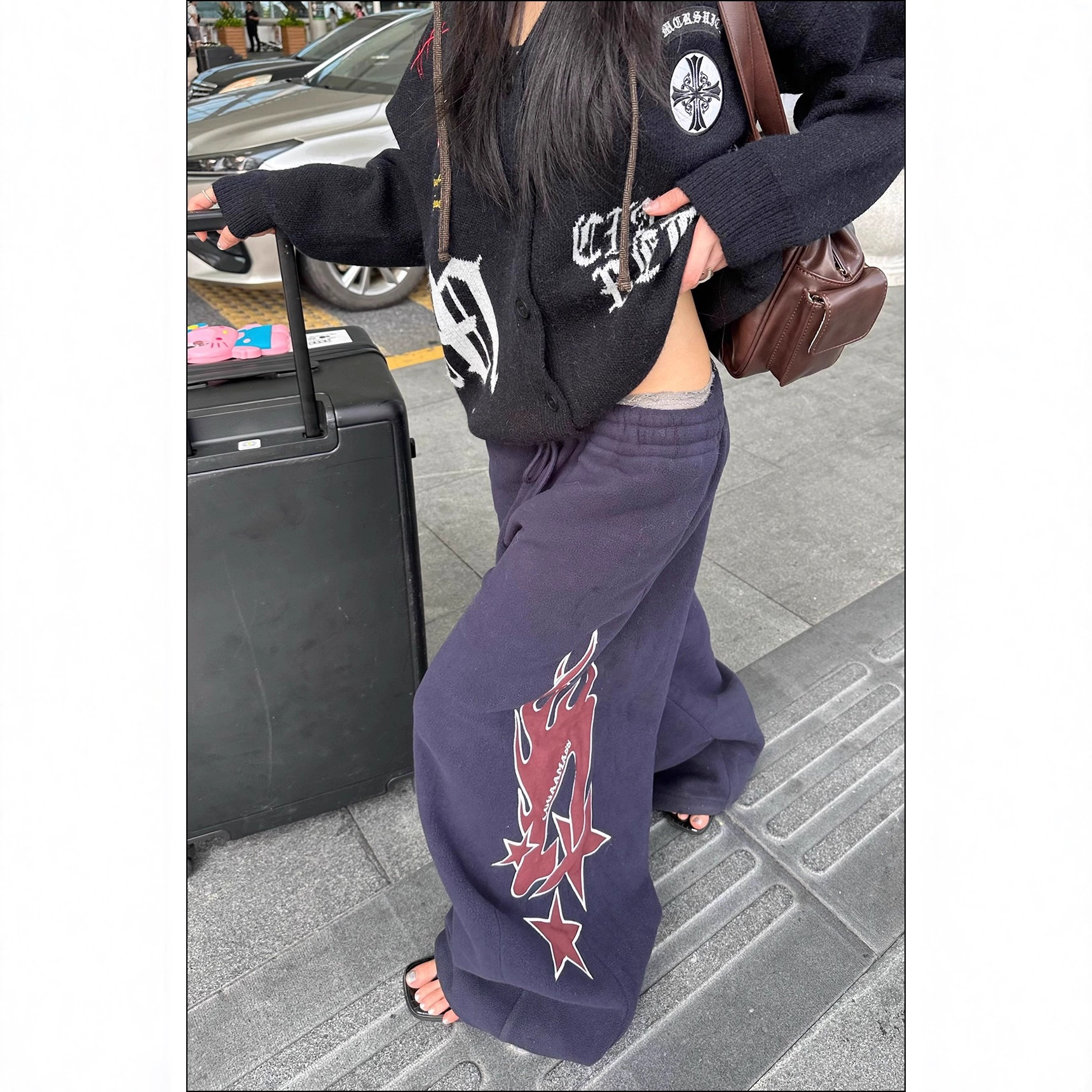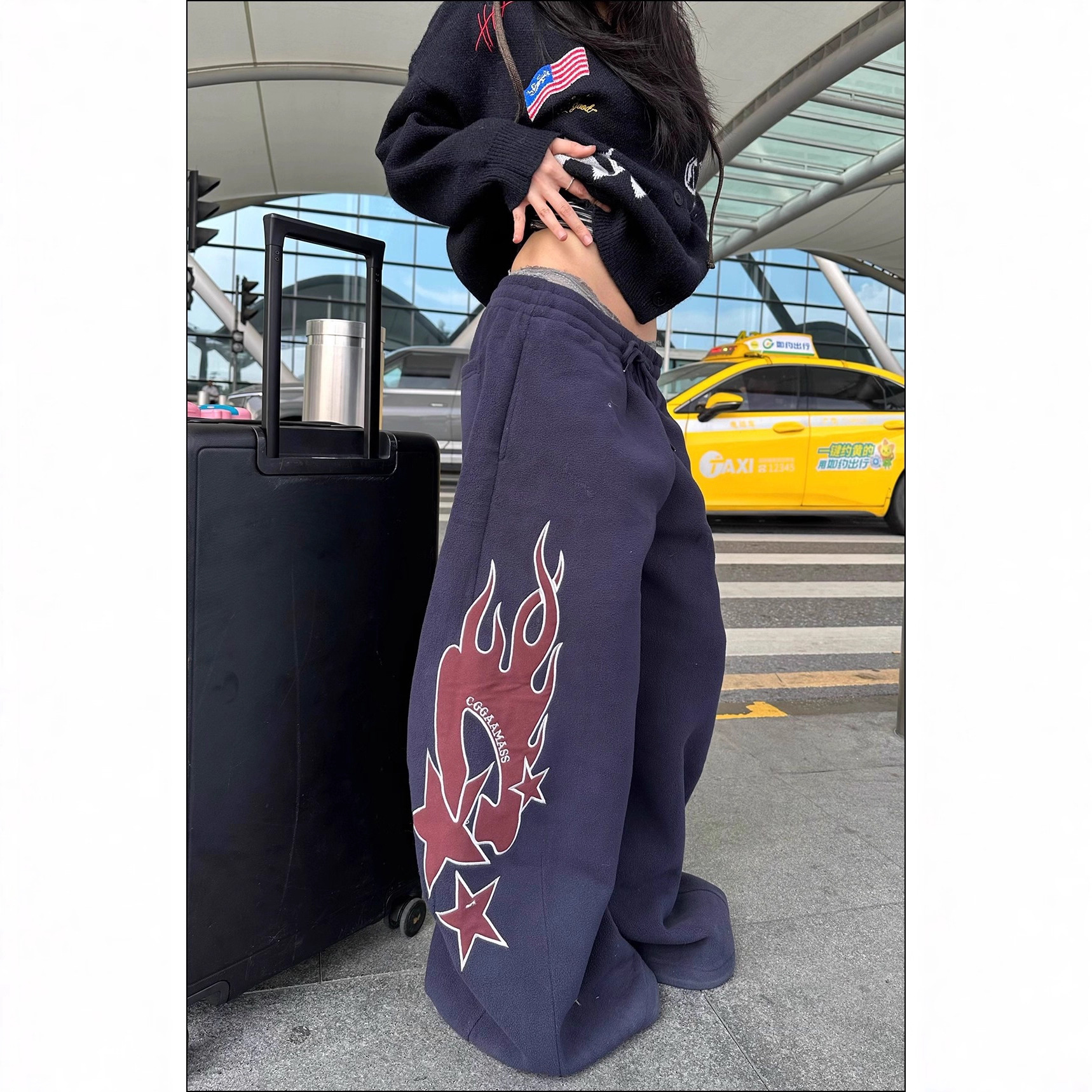Flame-patterned Casual Loose-fitting Pants