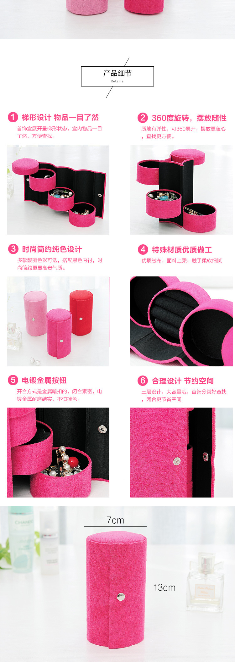 Name: 360 rotating three-layer jewelry box