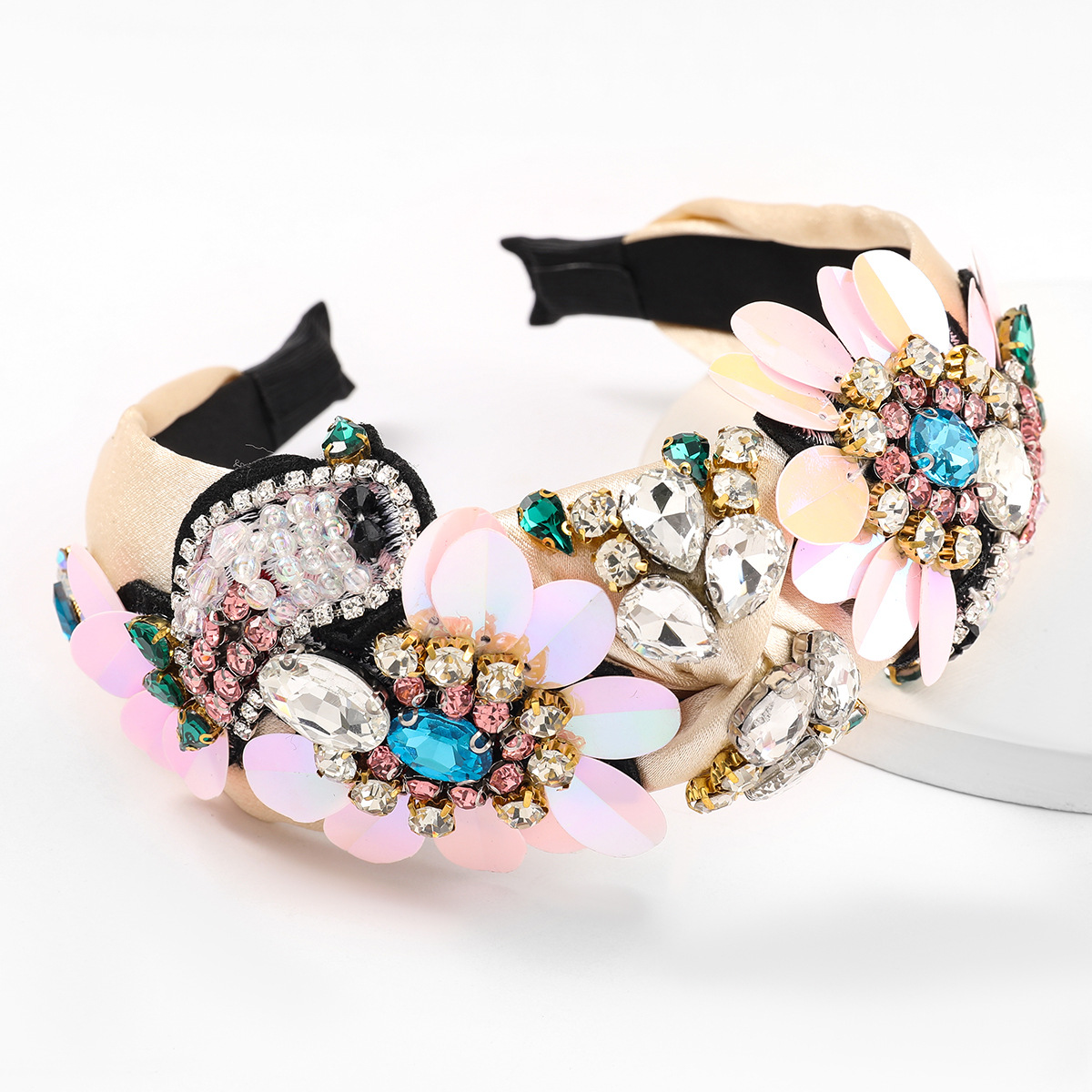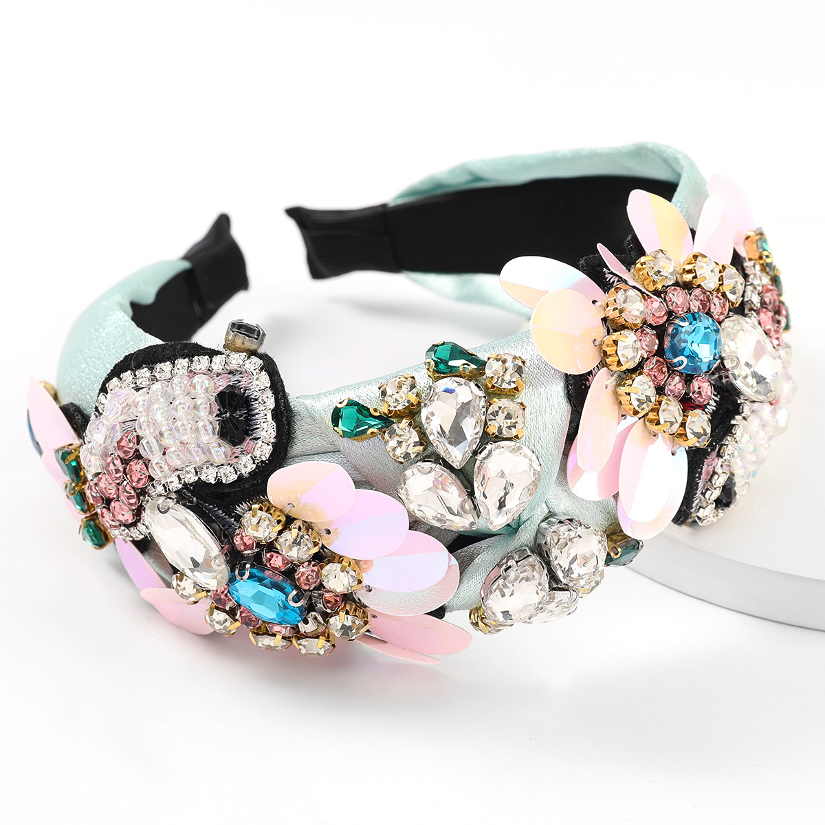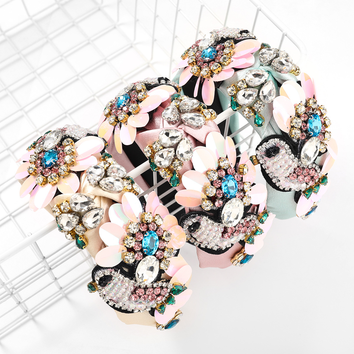 Flannel Diamond-studded Bird Flower Plastic Sequin Headband
