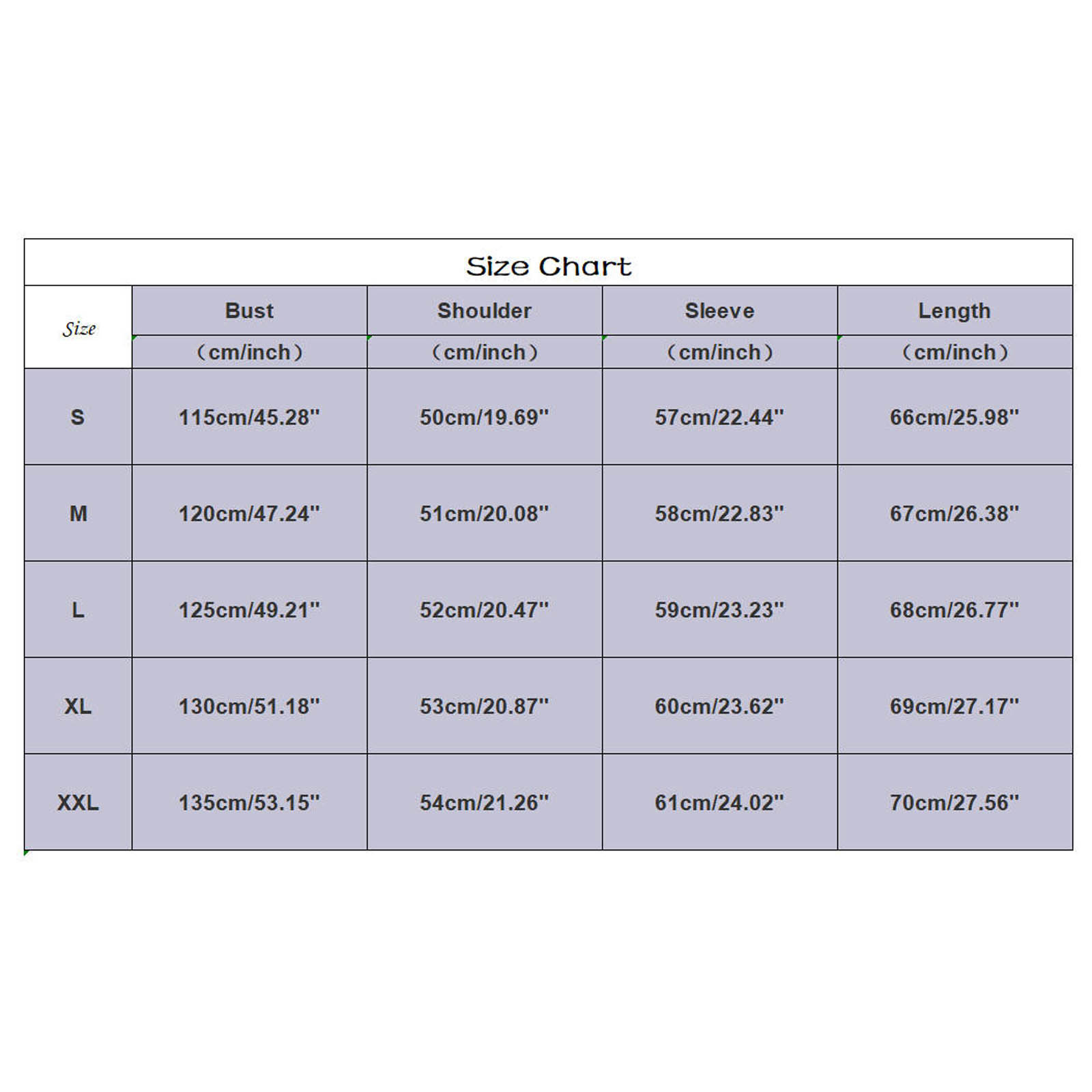 Sizes: S, M, L, XL, XXL, XXXL