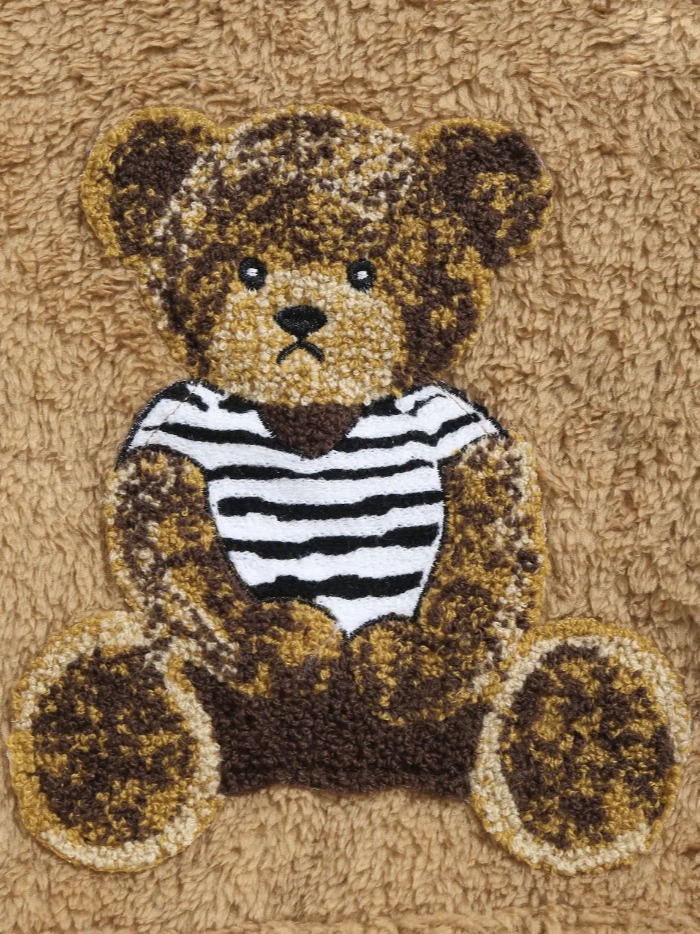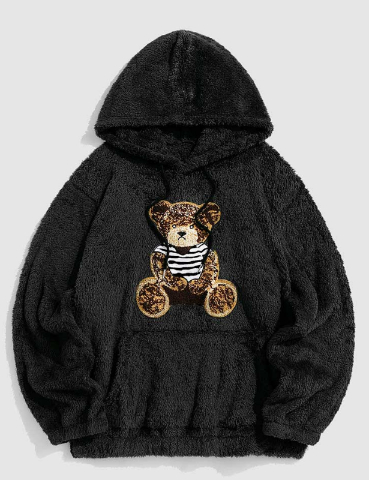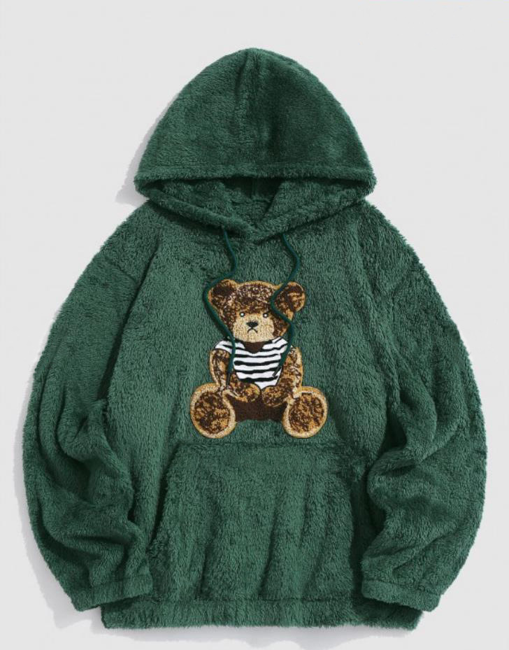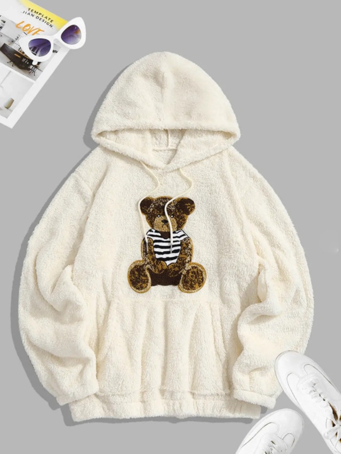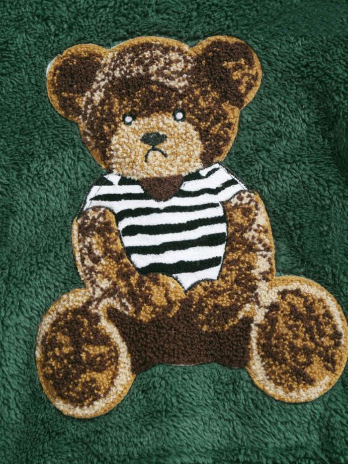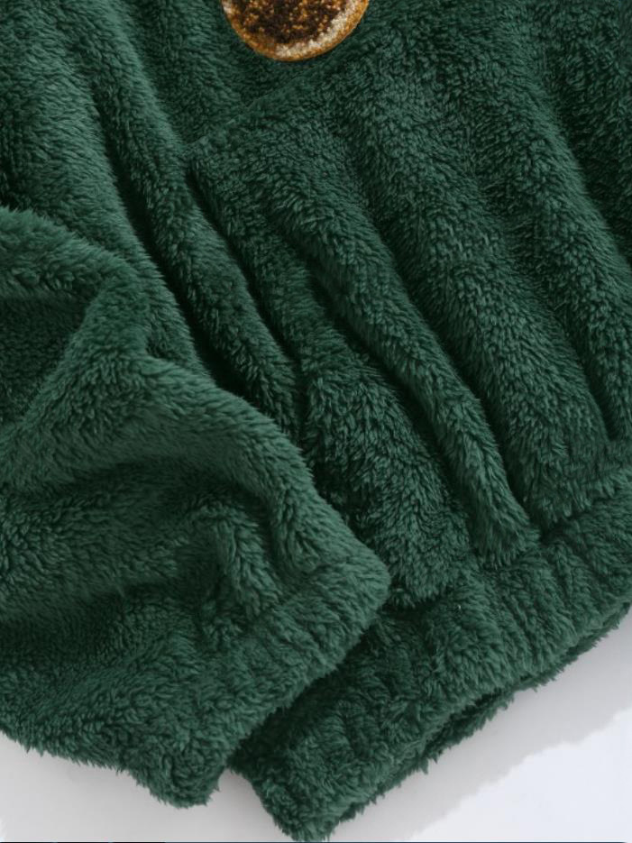 Flannel Fabric Plush Bear Embroidery Badge Hooded Sweater