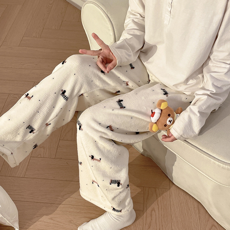 Color: sweatpants-1130 flower Blue Dog, sweatpants-1131 dot puppy, sweatpants-1132 pink KT full print, sweatpants-1133 black and white cat, sweatpants-1134 striped sausage dog, sports pants-1135 polka black dots sausage dog, sports pants-colored dots