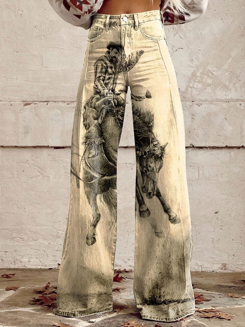 Flared Jeans Loose-fit Denim Pants With A Retro Print