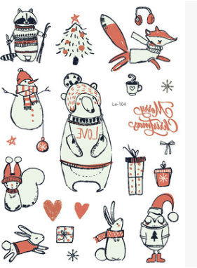 Various designs, colorful and abundant Glowing Christmas tattoos, Perfect for a big party of different ages.