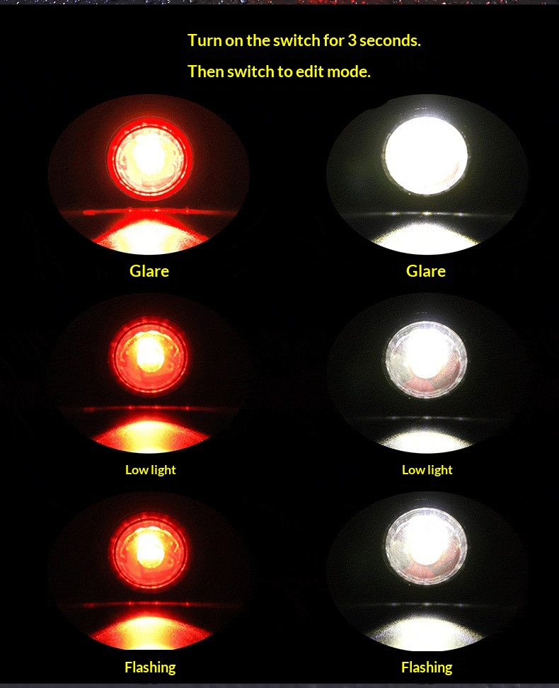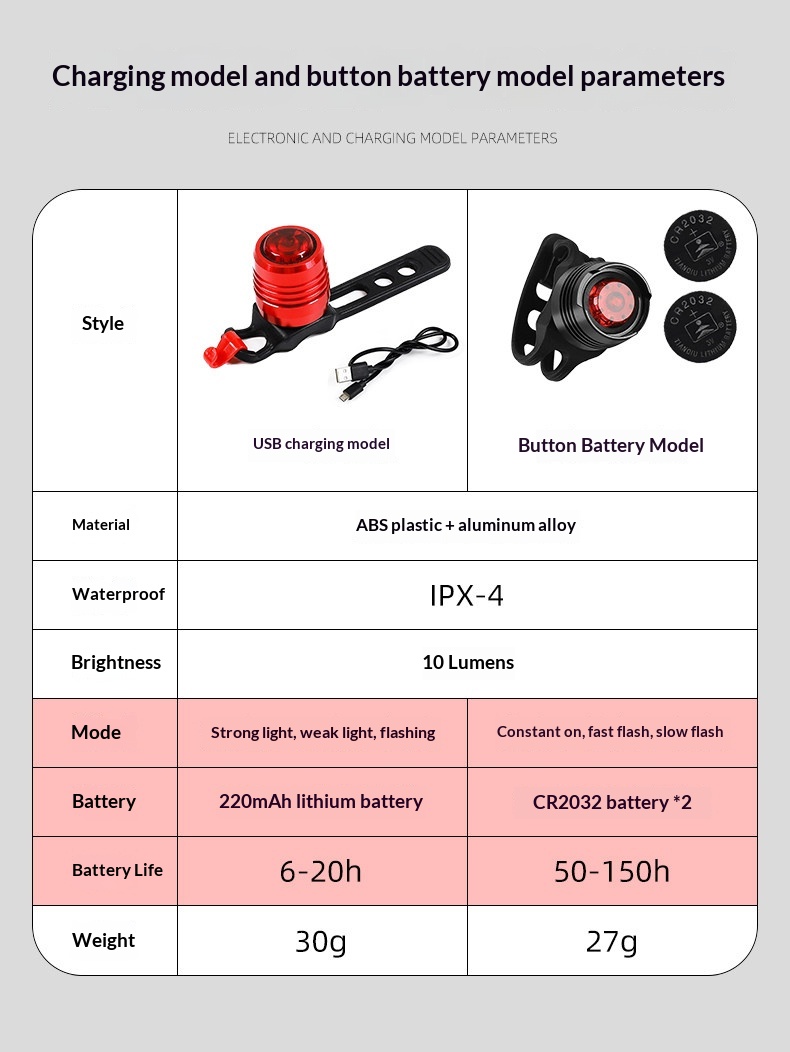 Color: Black case with red light—charging model; black case with white light—charging model; red case with red light—charging model