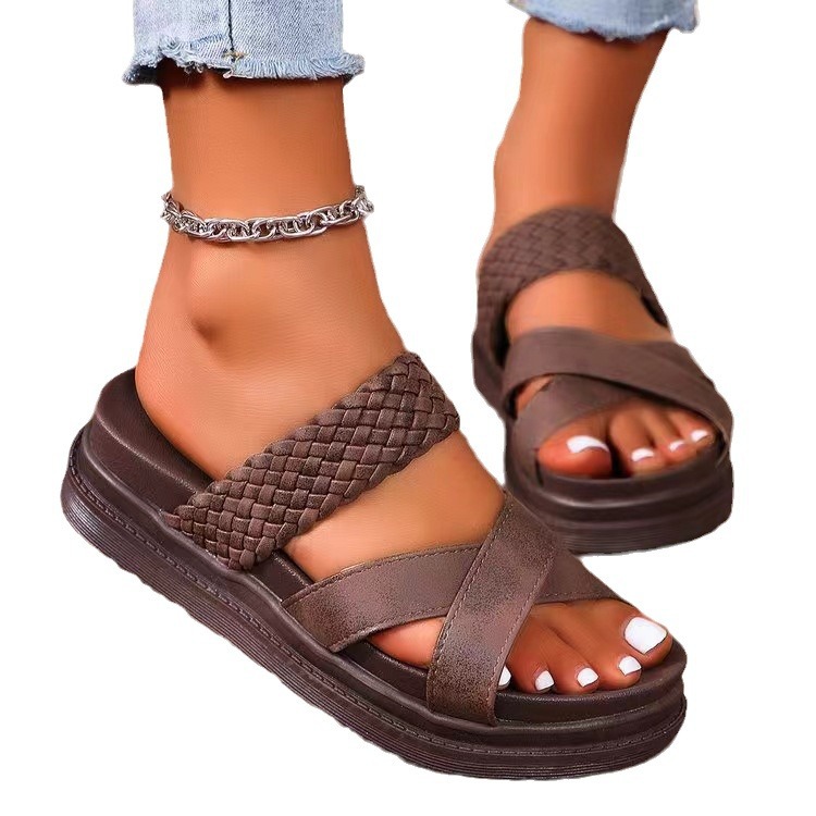 Flat And Thick Soled Cross Woven Women's Sandals