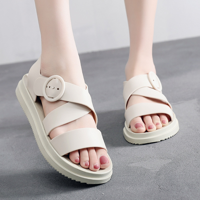 Flat bottom thick new plastic solid color waterproof hollow shoes