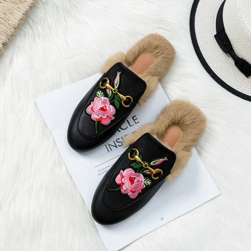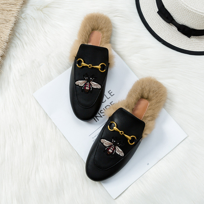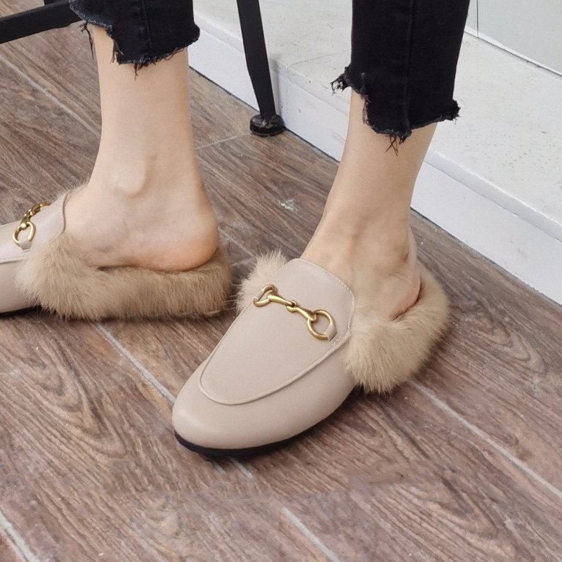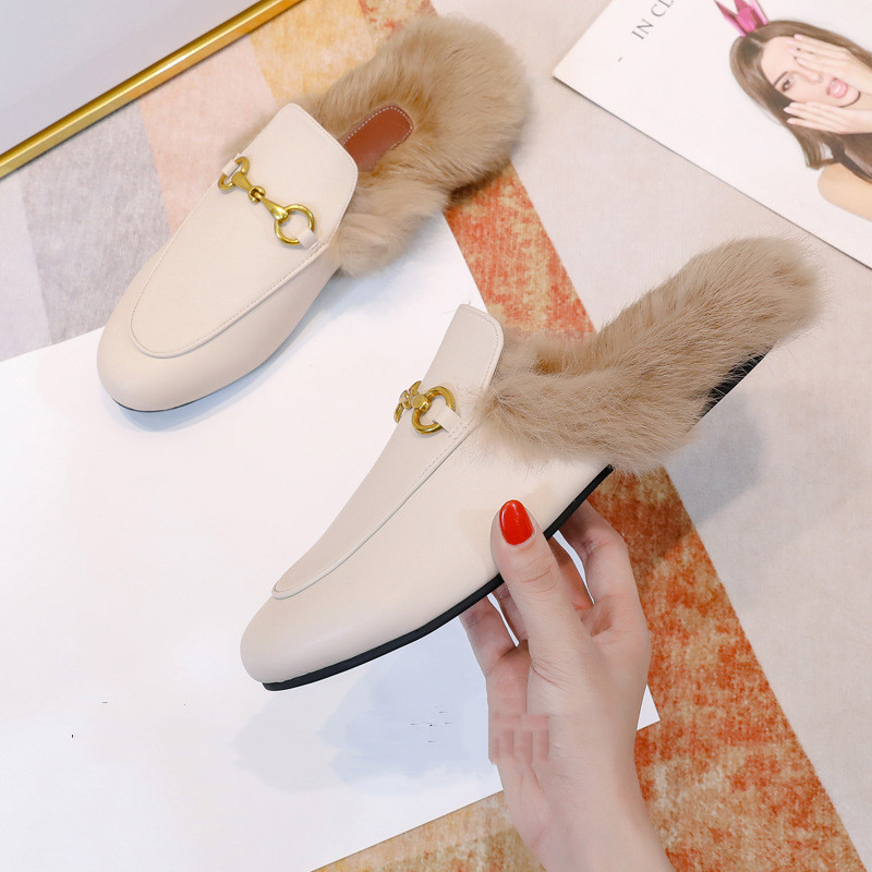 Flat-bottomed Rabbit Fur Baotou Half Slippers