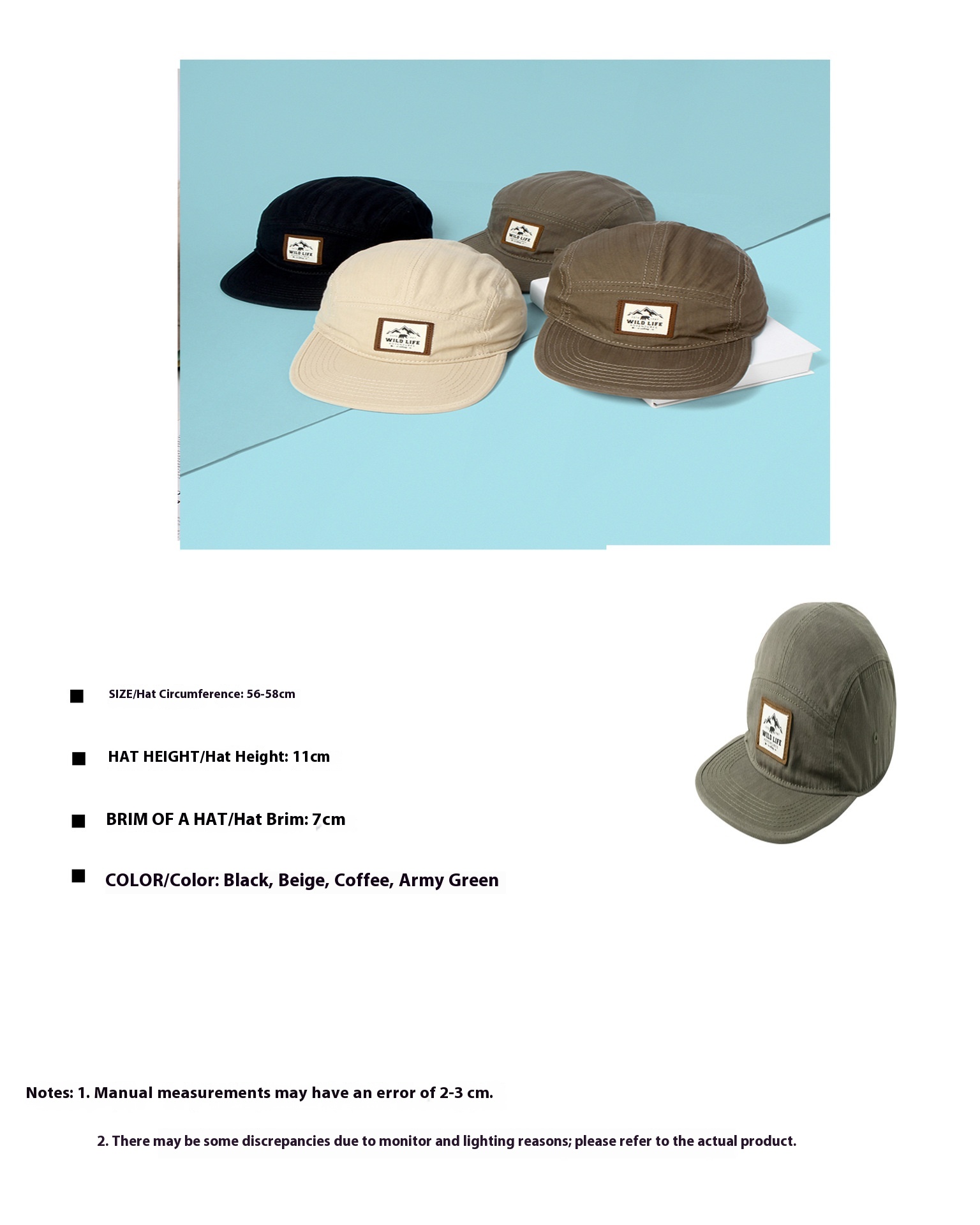 Color: green, khaki, black, brown