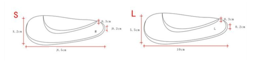 S: 8.6 x 4.5 x 0.5cm ; L: 9.7 x 5.5 x 0.6cm