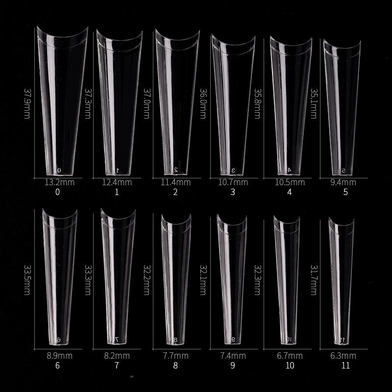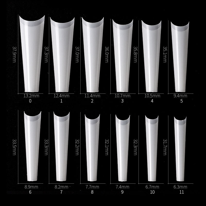 500 nail tips with 10 different sizes.