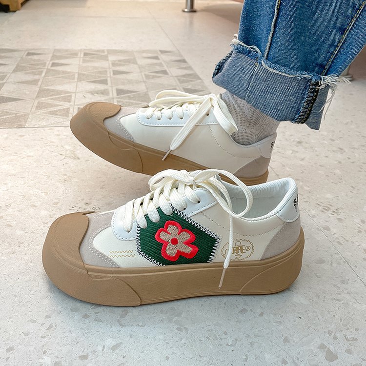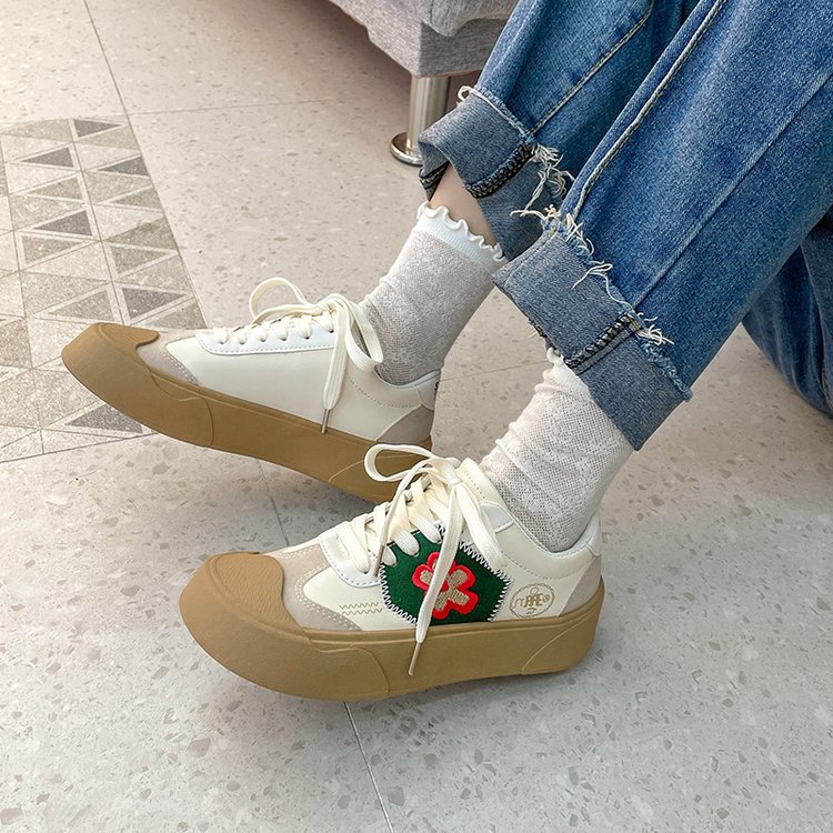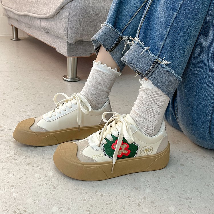Flat Round Toe Lace-up Student Sneakers