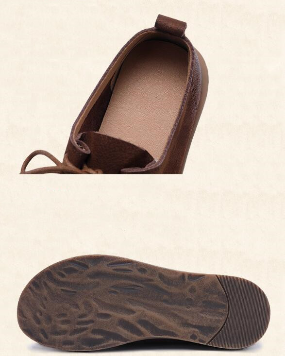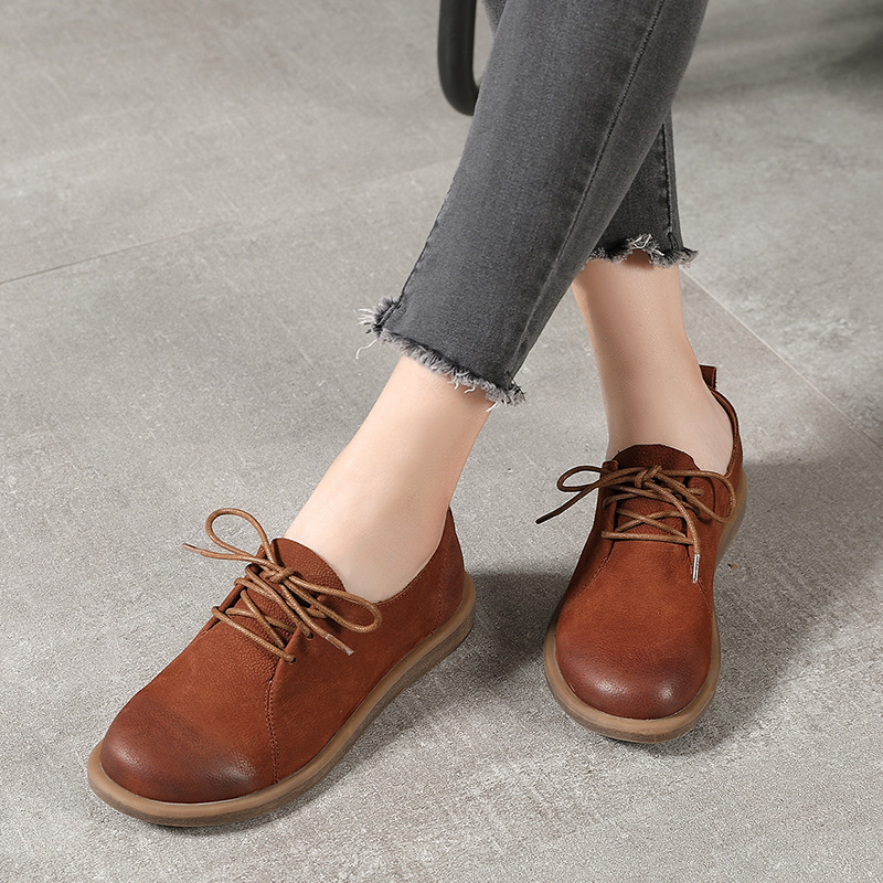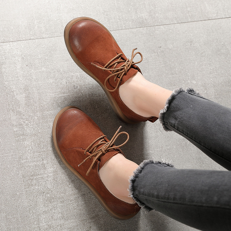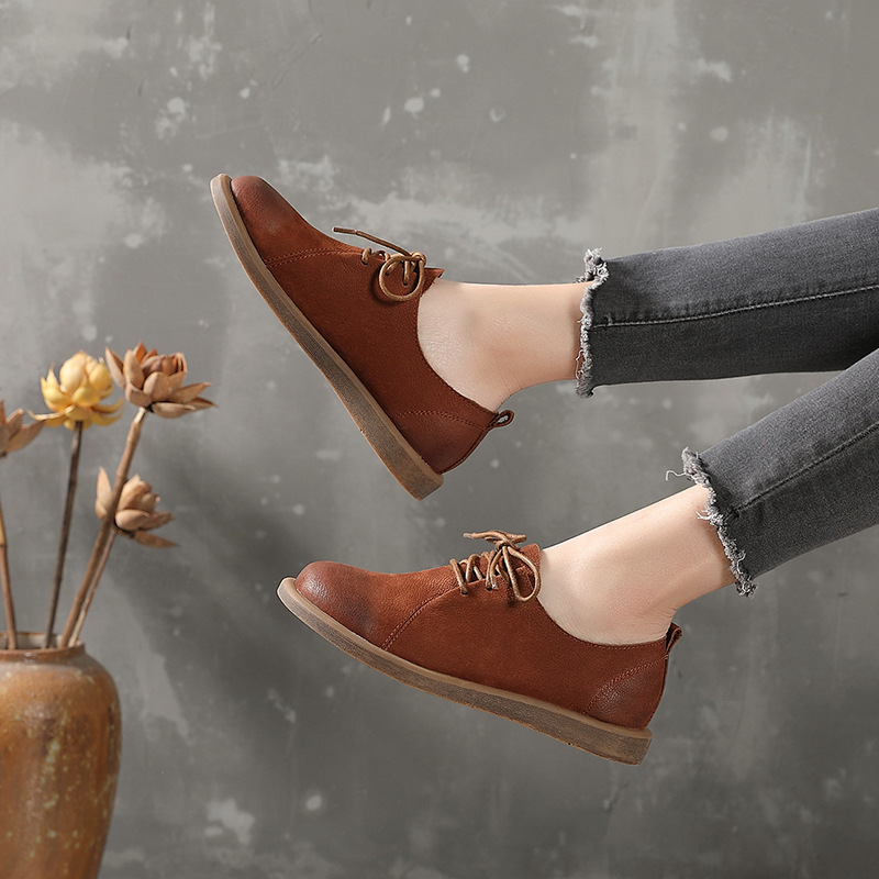 Flat Round Toe Literary Retro Lace Up Leather Shoes