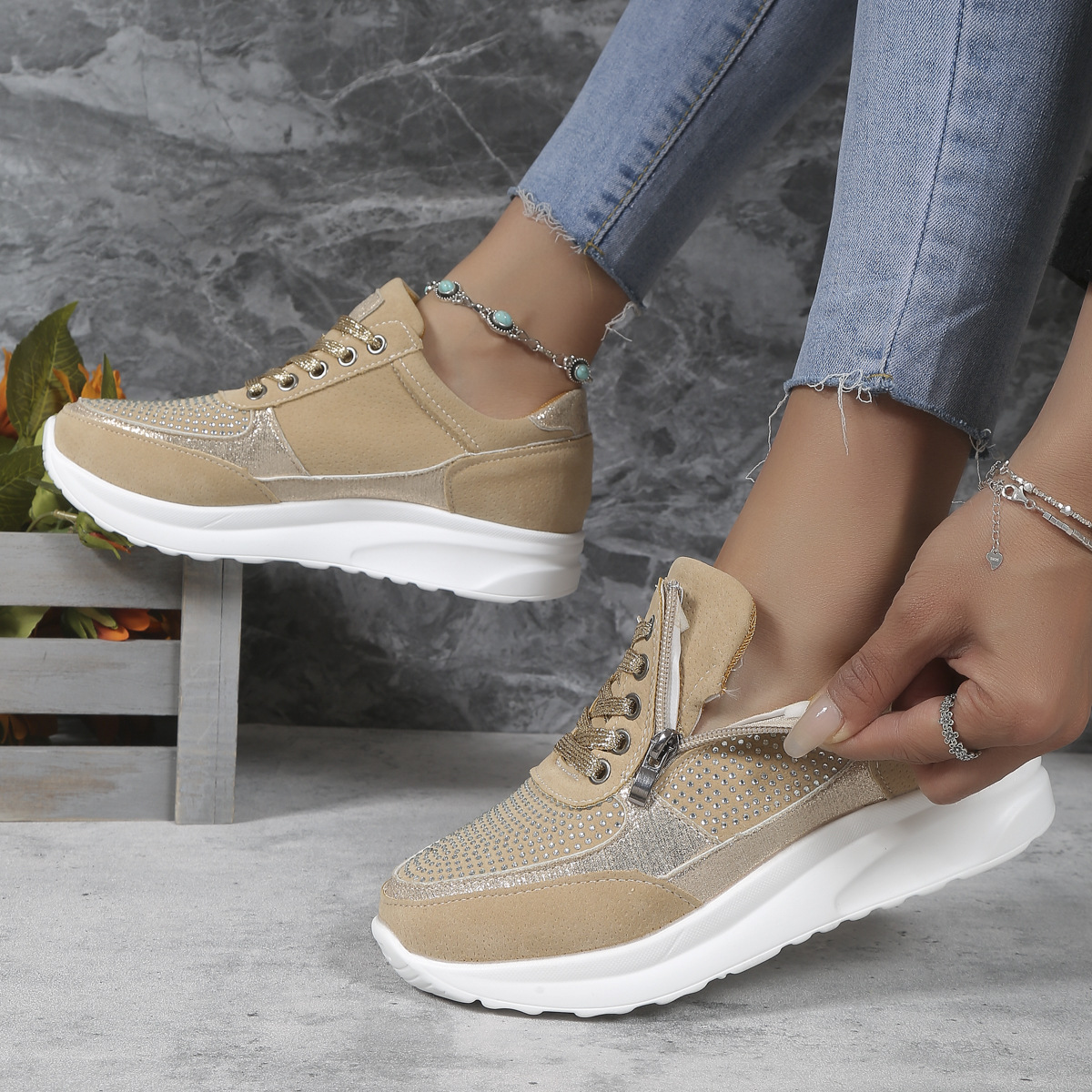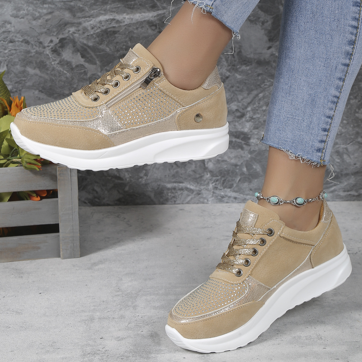 Flat Round Toe Rhinestone Pumps Women's Sports Casual Shoes