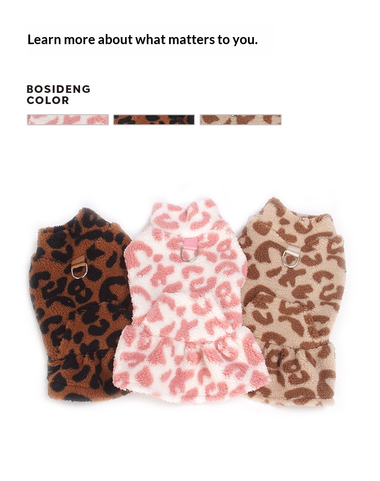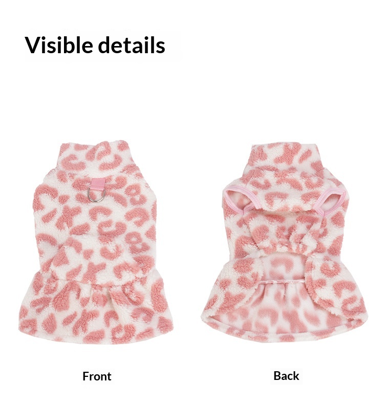 Colors: Leopard-print Fleece Dress in Khaki, Leopard-print Fleece Dress in Brown, Leopard-print Fleece Dress in Pink