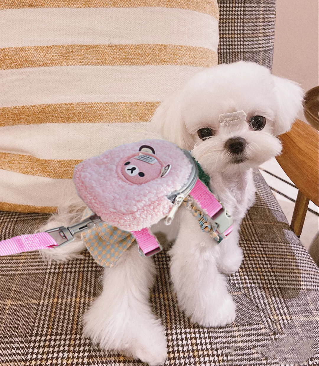 Color: pink outing bag + traction rope, beige outing bag + traction rope, gray and purple outing bag + traction rope, blue outing bag + traction rope, yellow outing bag + traction rope