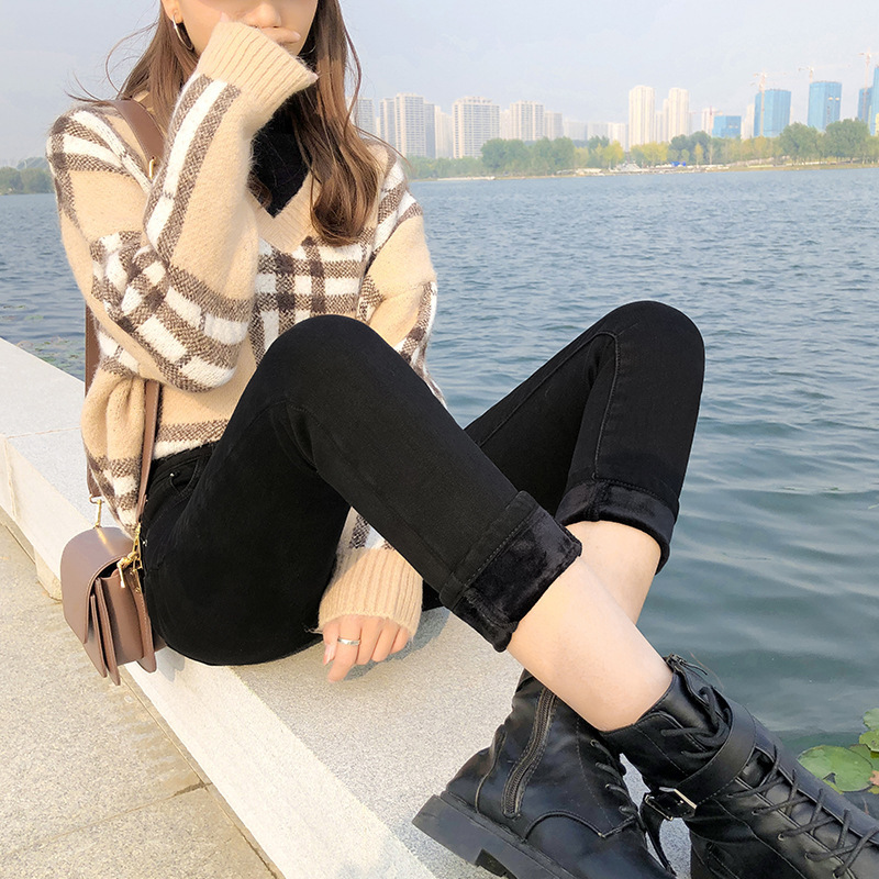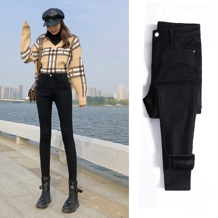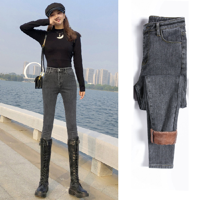 Color: 9052# plus velvet trousers gray, 9052# plus velvet trousers black, 9052# plus velvet trousers blue and gray