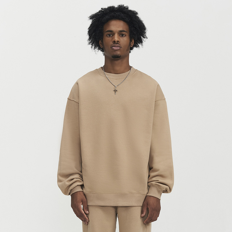 Fleece-lined Crew Neck Sweater Men's Loose Heavy Thickening