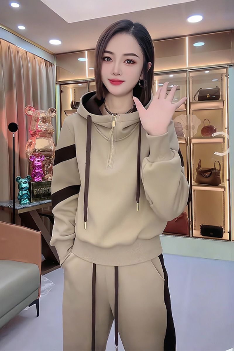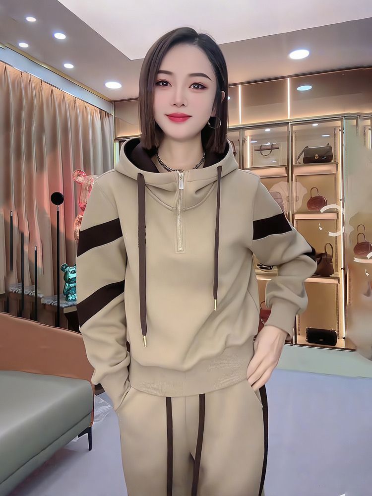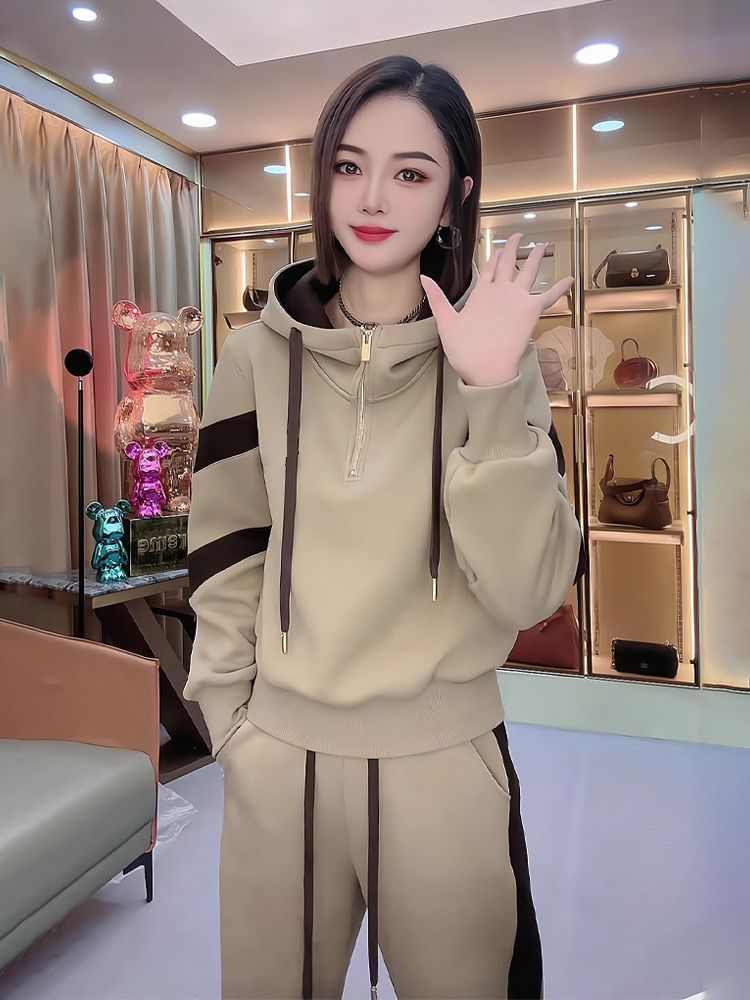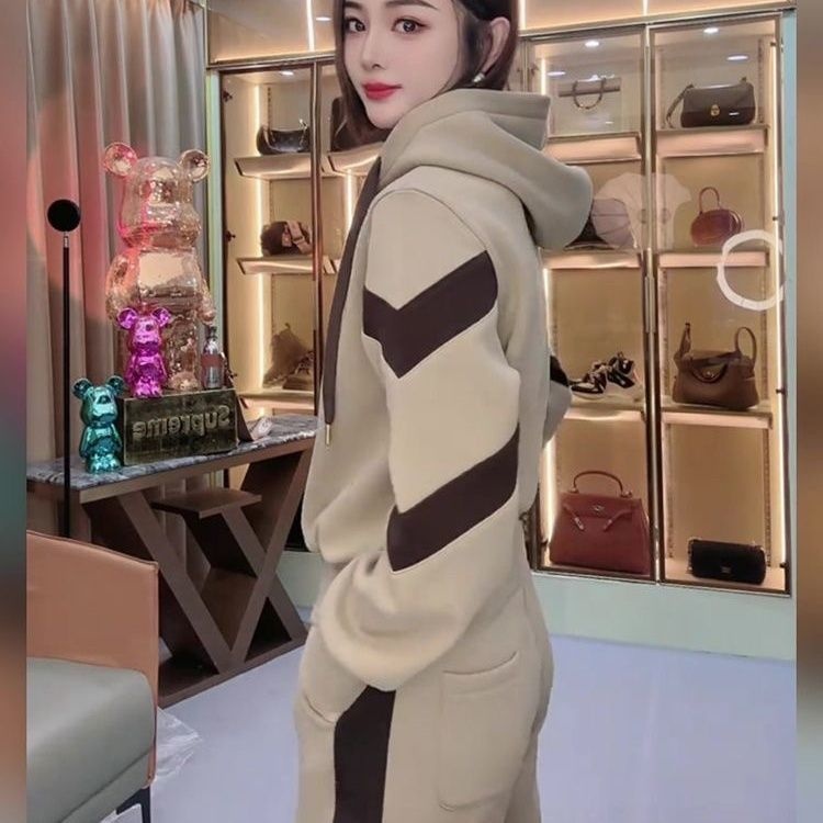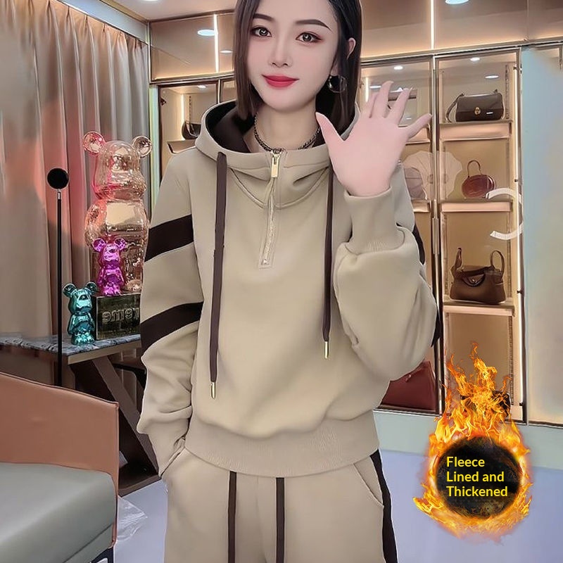 Fleece-lined Hoodie And Wide-leg Pants Two-piece Set Trendy