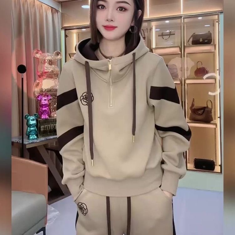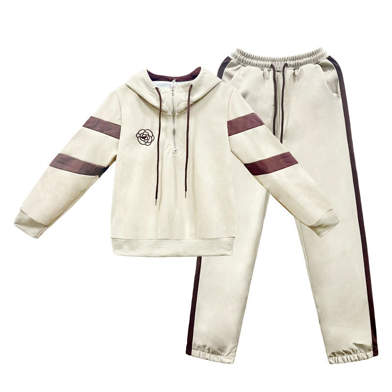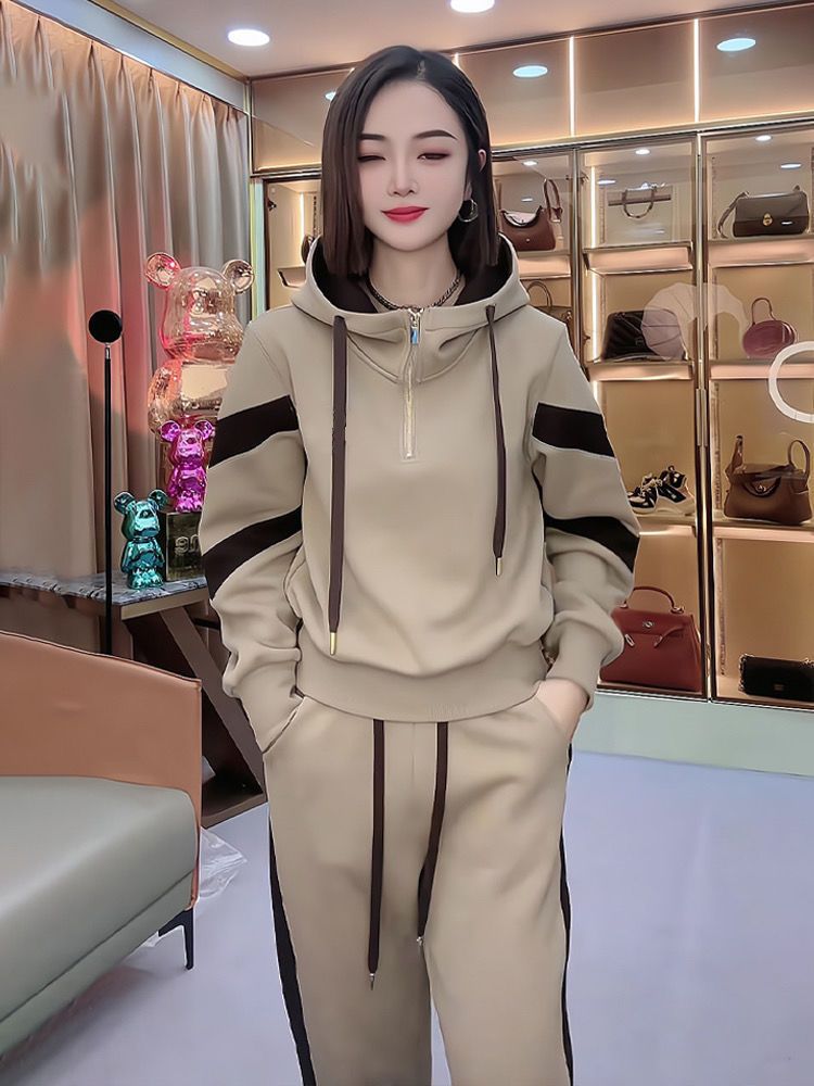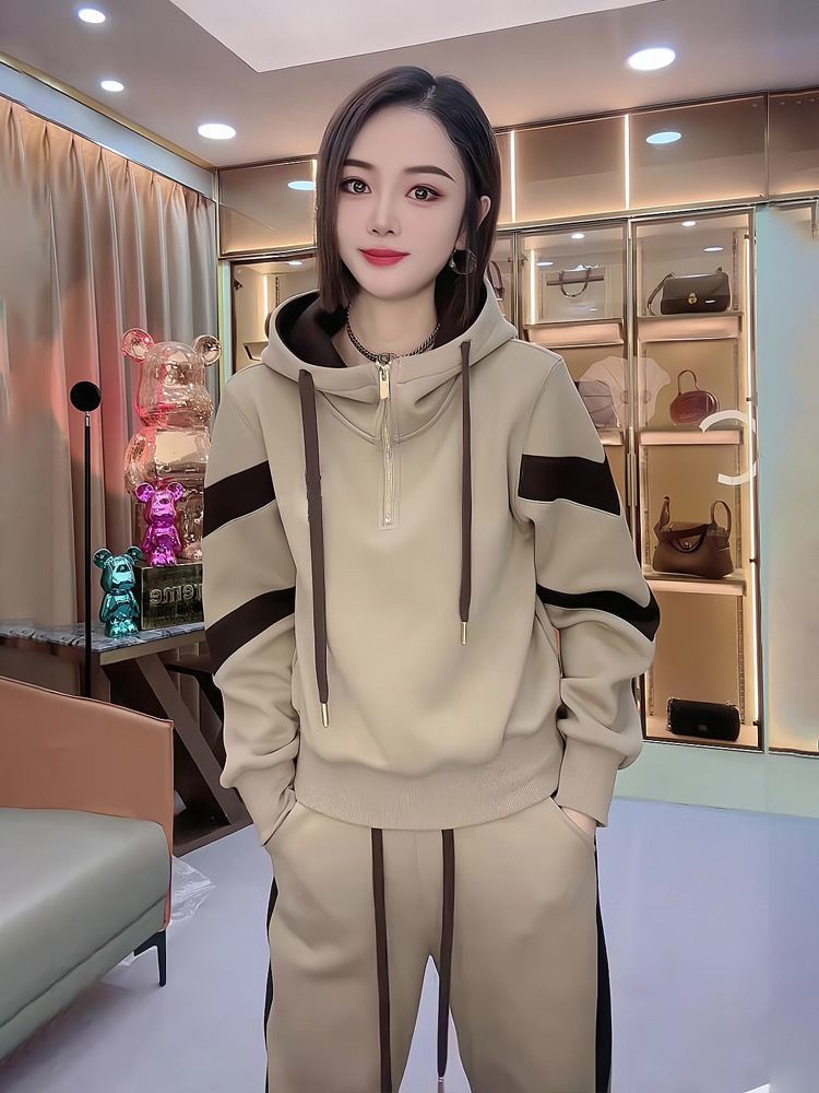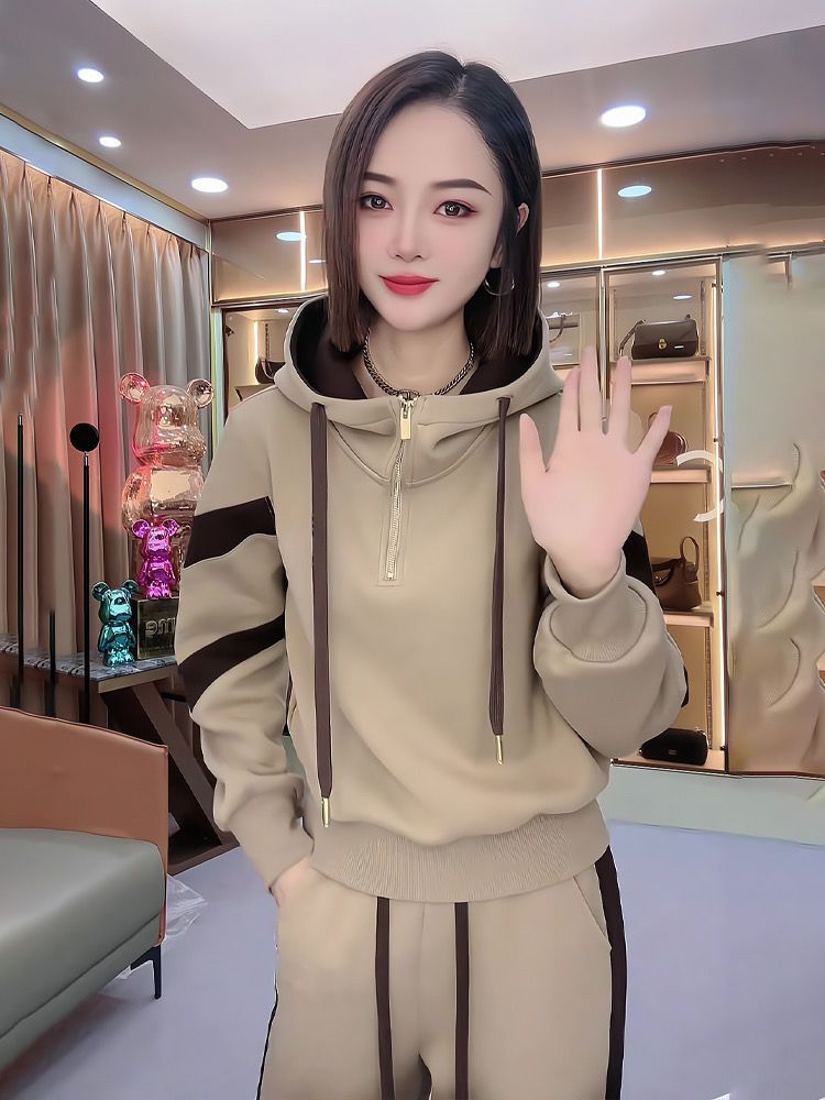 Fleece-lined Hoodie And Wide-leg Pants Two-piece Set Trendy