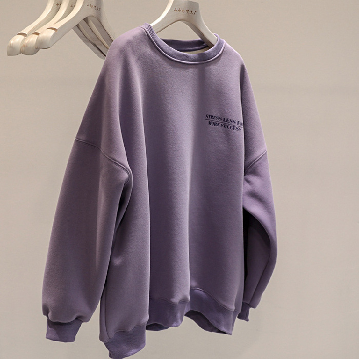 Fleece-lined Thick Lazy Round Neck Loose Sweatshirt Women