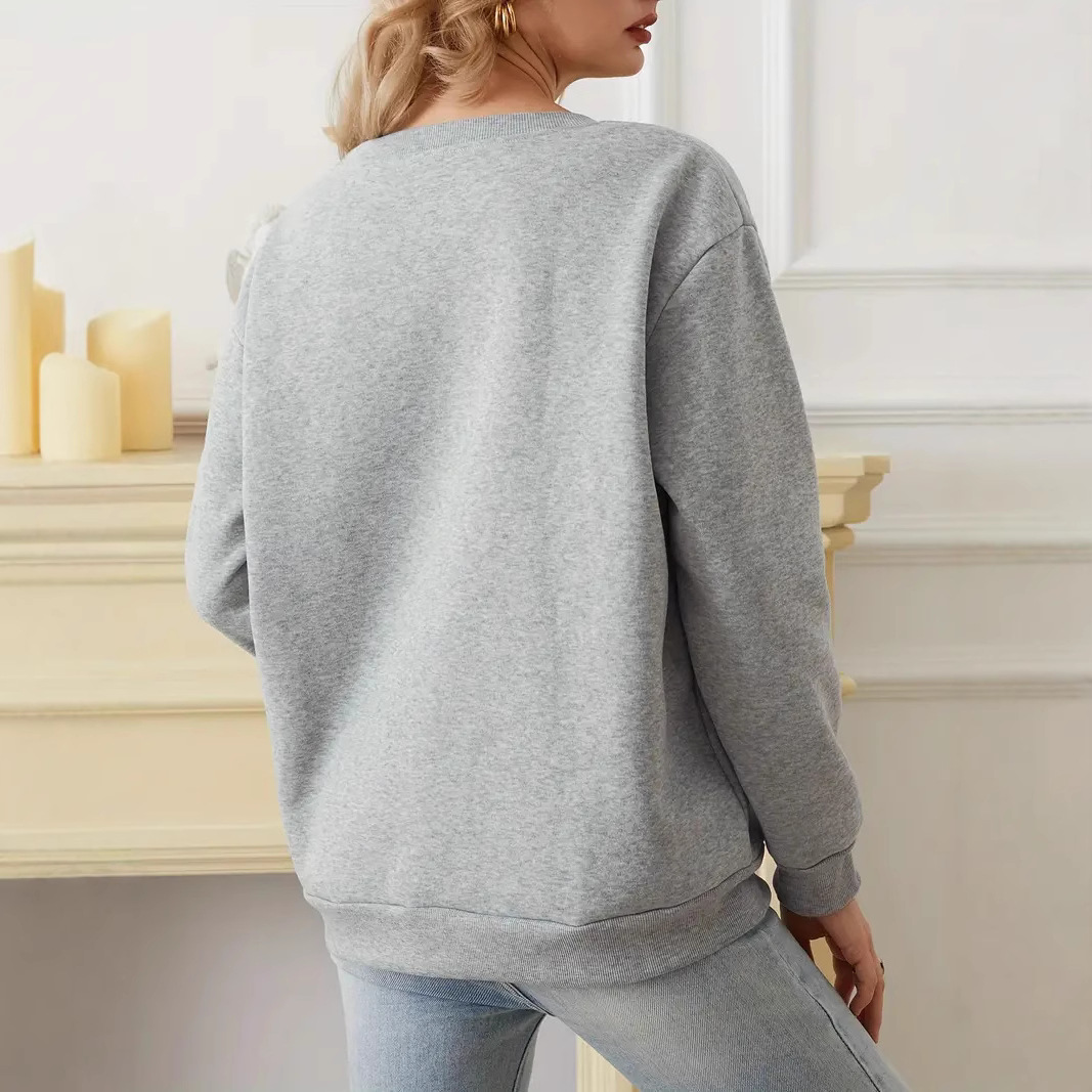 Fleece-lined Thick Round Neck Loose-fitting Solid Color Long Sleeves Sweater