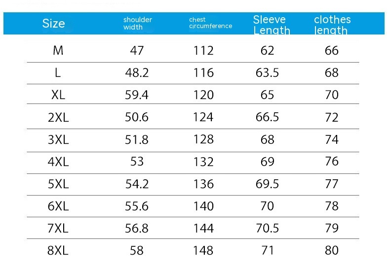 Size: M,L,XL,XXL,XXL,XXXXL,5XL,6XL,7XL,8XL
